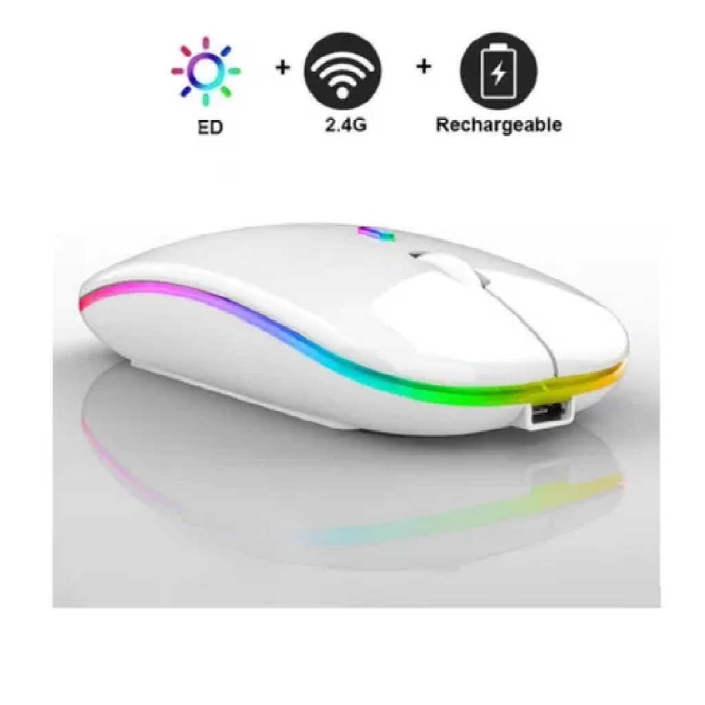 Mouse Optico Sem Fio Recarregável Led Rgb 2.4 Ghz Wirelles USB Computador Silencioso Retroiluminado Gamer Mouse Ergonômico