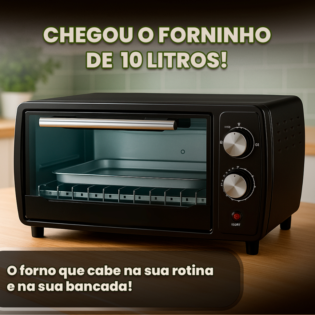 Forno Elétrico Bak 10 Litros 110v ou 220v 1000w Bancada Master Cozinheiro Compacto Na cozinha Com Timer Desligamento