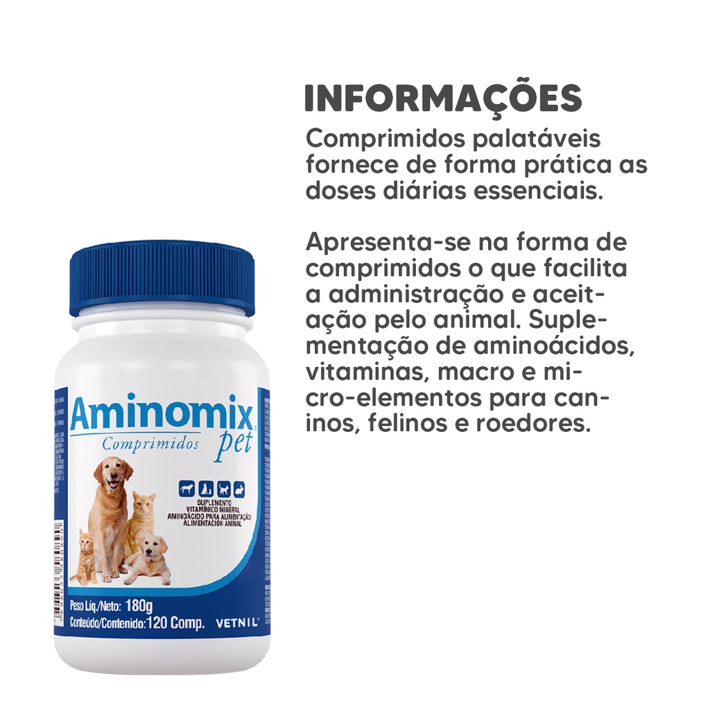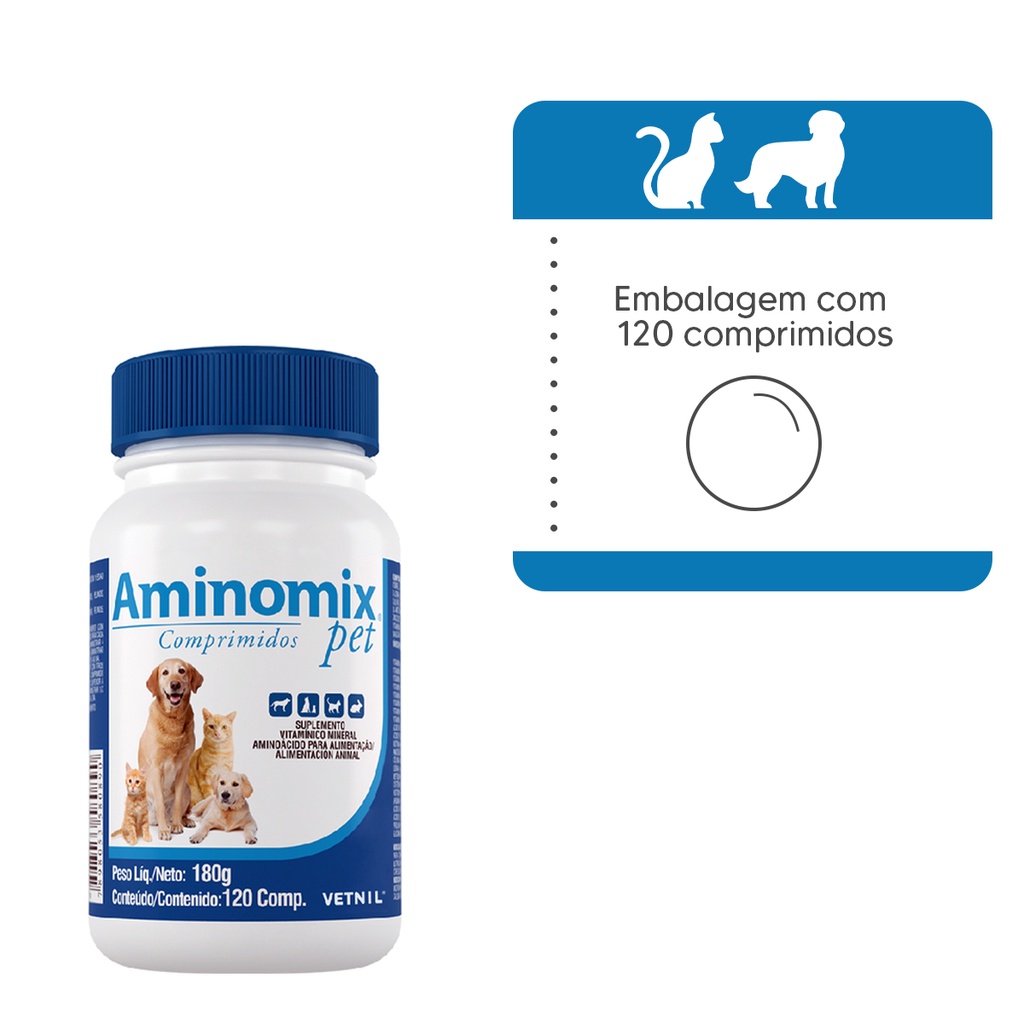 Aminomix Pet Suplemento Vitaminico Cães e Gatos 120comp.