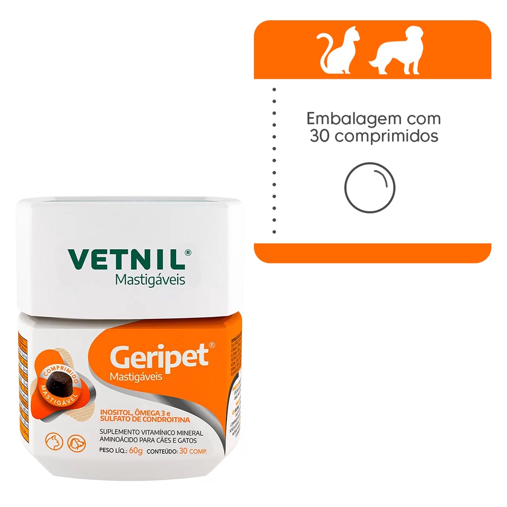Suplemento Mastigável para Cachorro Gato Idoso Geripet 30 Cp
