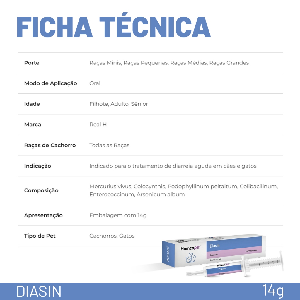 Pasta Diasin 14g Homeopatia Diarreia Aguda Cães/gatos