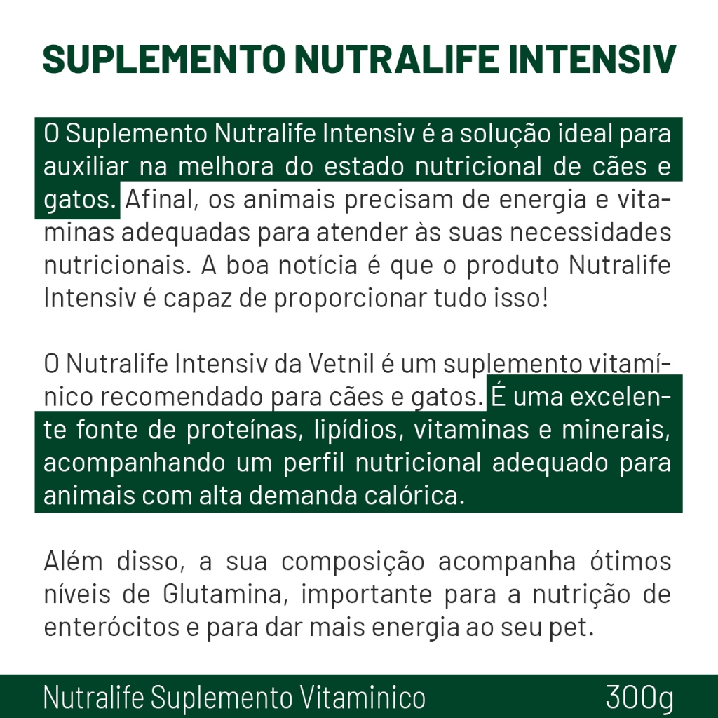 Suplemento Nutricional Nutralife Intensiv Vetnil 300GRS