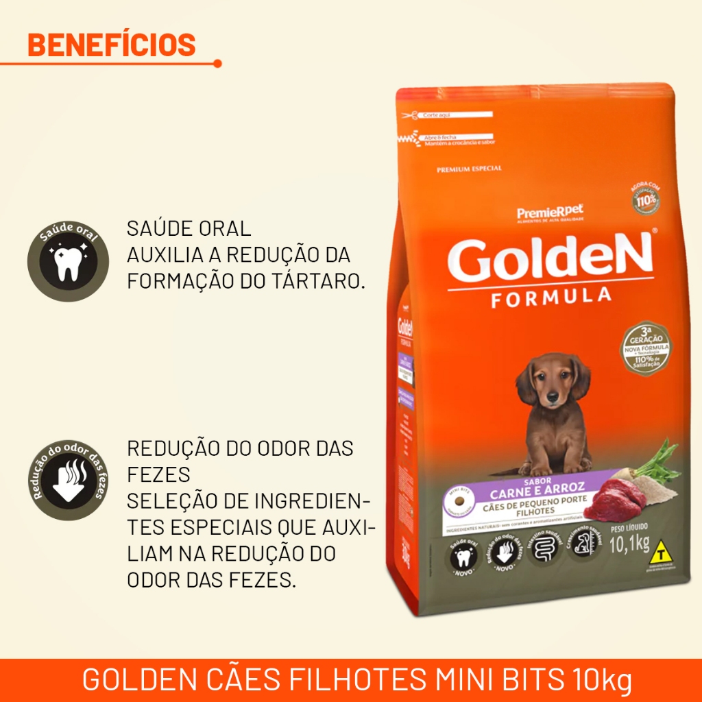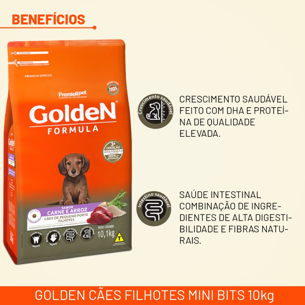 Ração Golden Cães filhotes Mini Bits 10kg Carne & Arroz