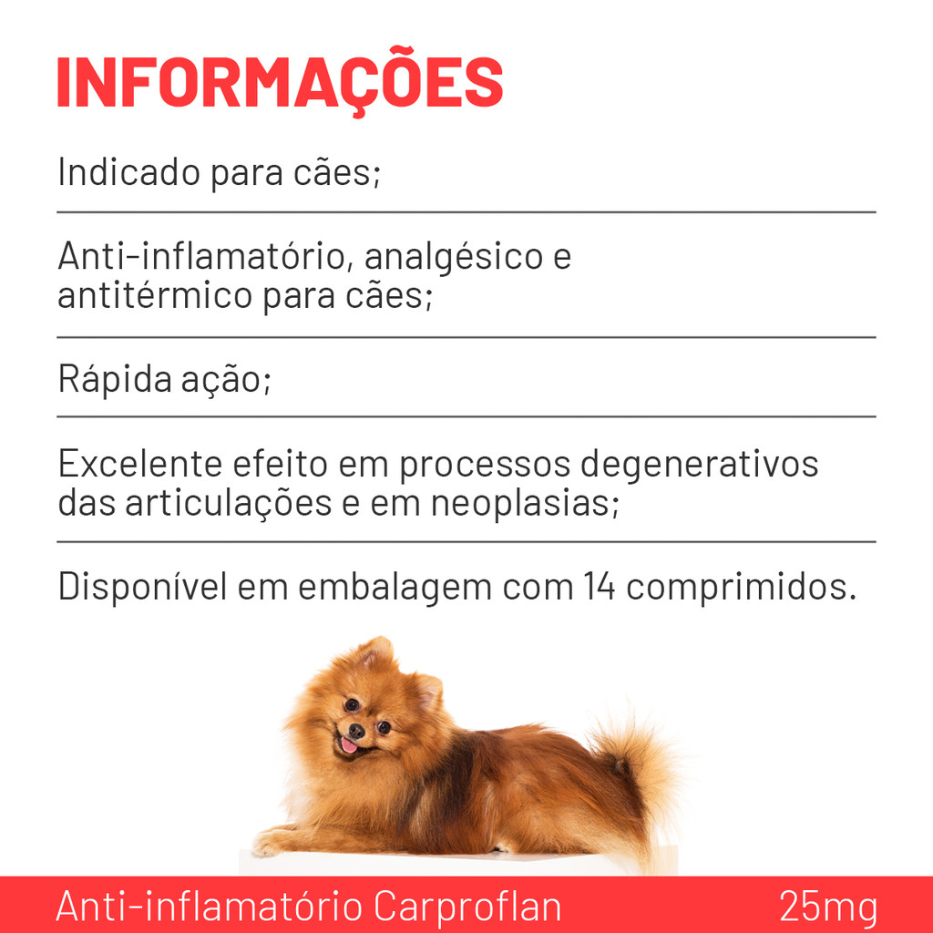 Carproflan 25mg - 14 Comprimidos Anti-inflamatório Para Cães