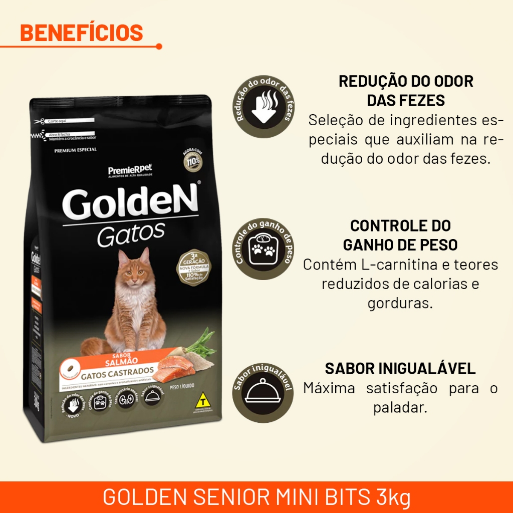 Ração Golden para Gatos Castrados – Sabor Salmão – 10,1kg