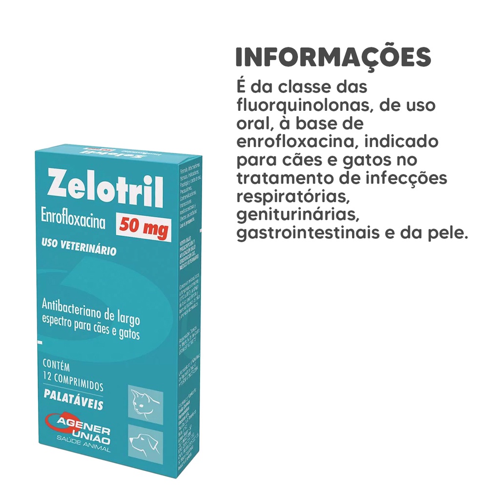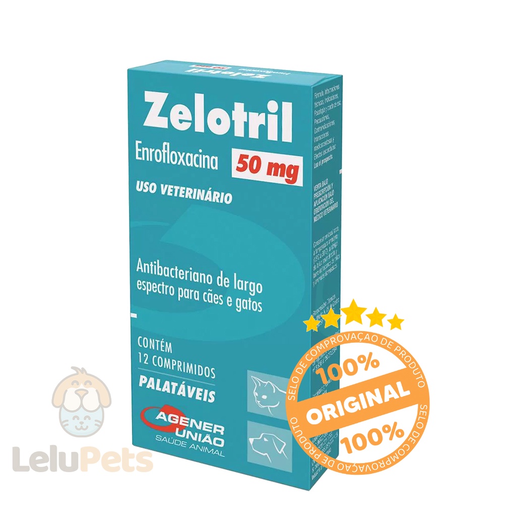 Zelotril 50mg Antibacteriano Agener Para Cães/Gatos 12Comp.
