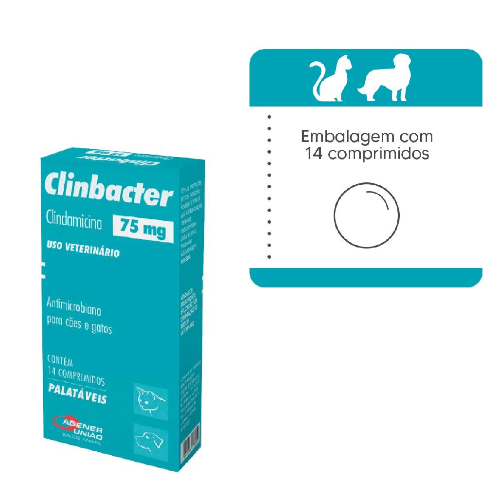 Clinbacter 75Mg Antimicrobiano Agener Cães e Gatos 14Comp