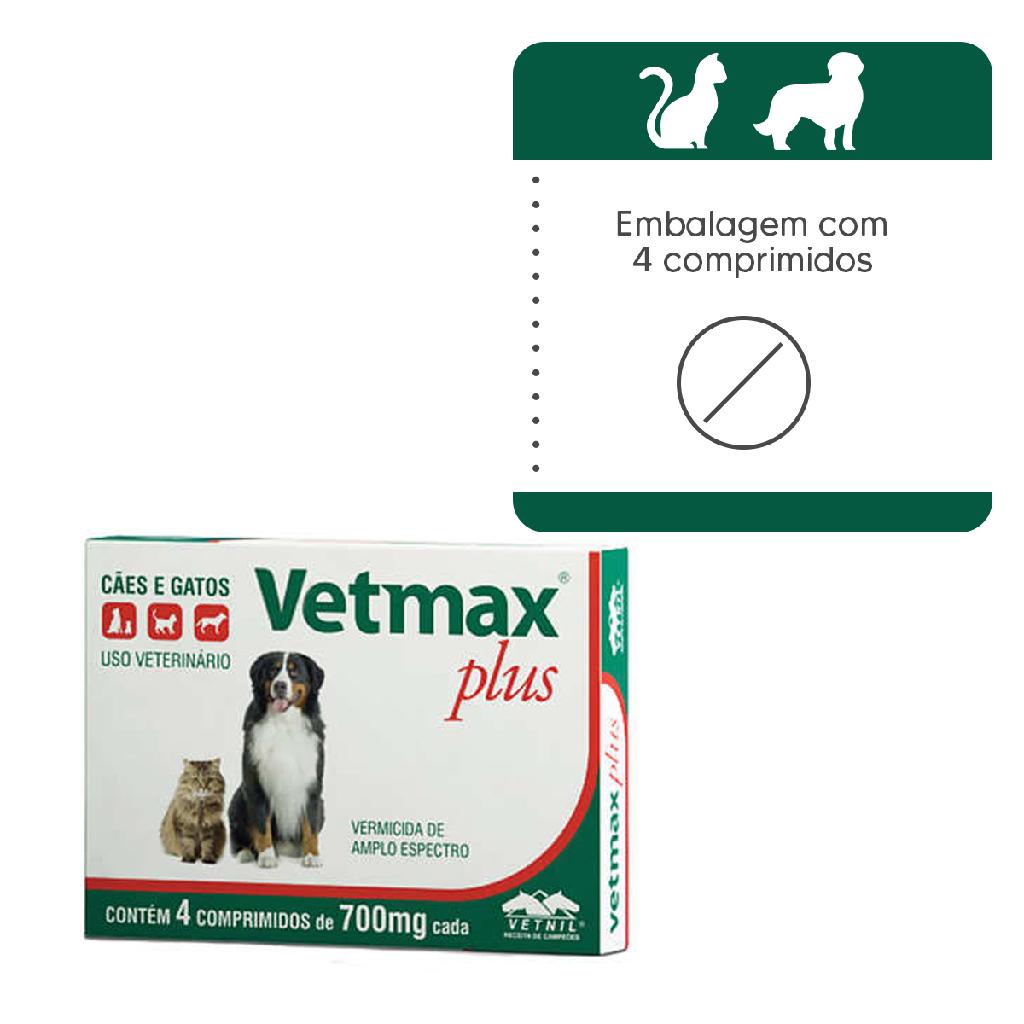 Vetmax Plus 700mg Vetnil 4 comp. Cães e Gatos Kit com 10