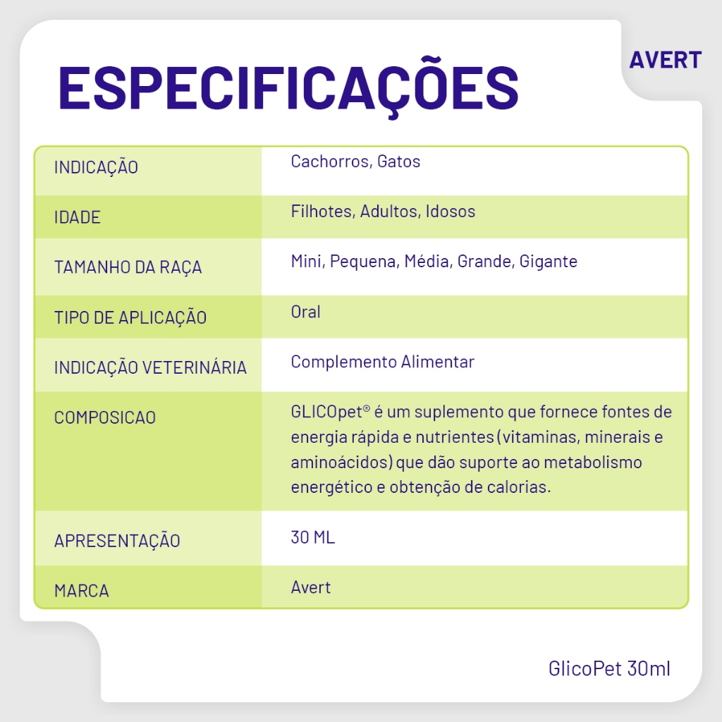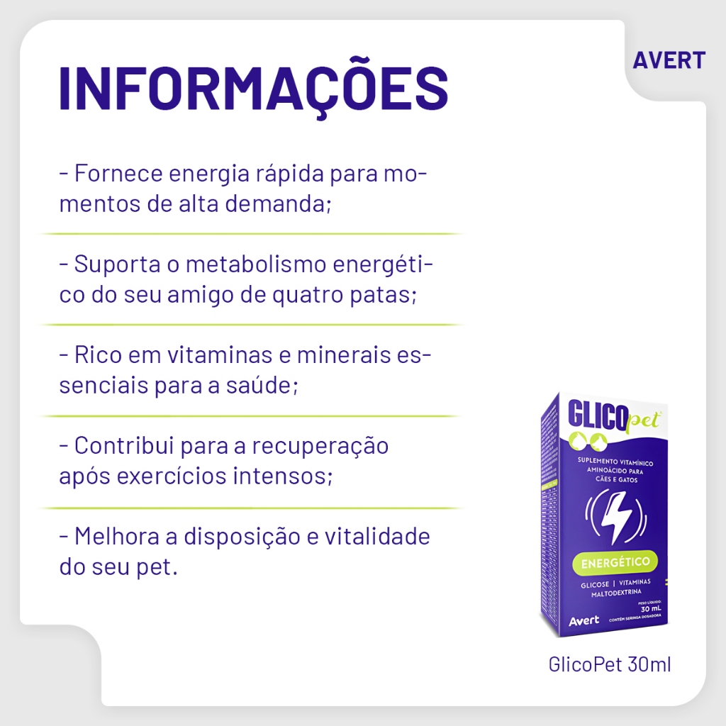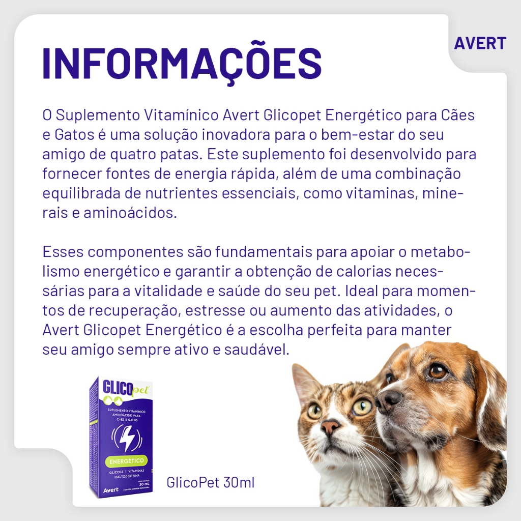 Glicopet Suplemento Vitamínico Para Cães E Gatos 30ml Avert