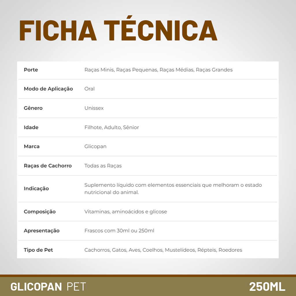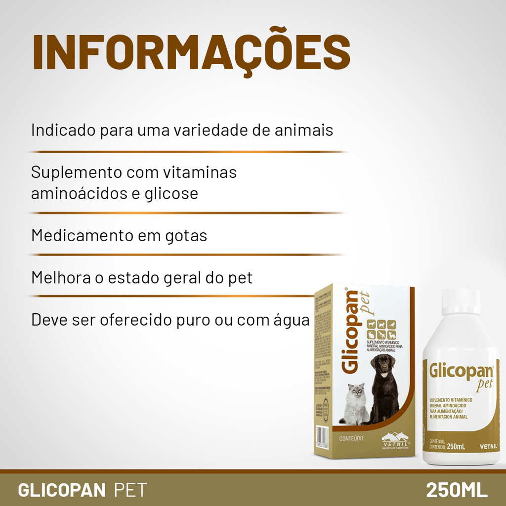 Glicopan Pet 250ml Suplementação De Vitaminas Vetnil