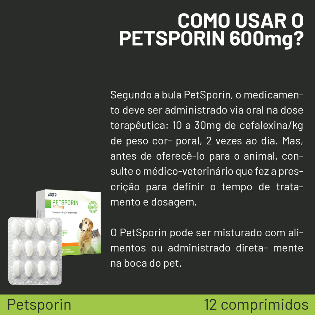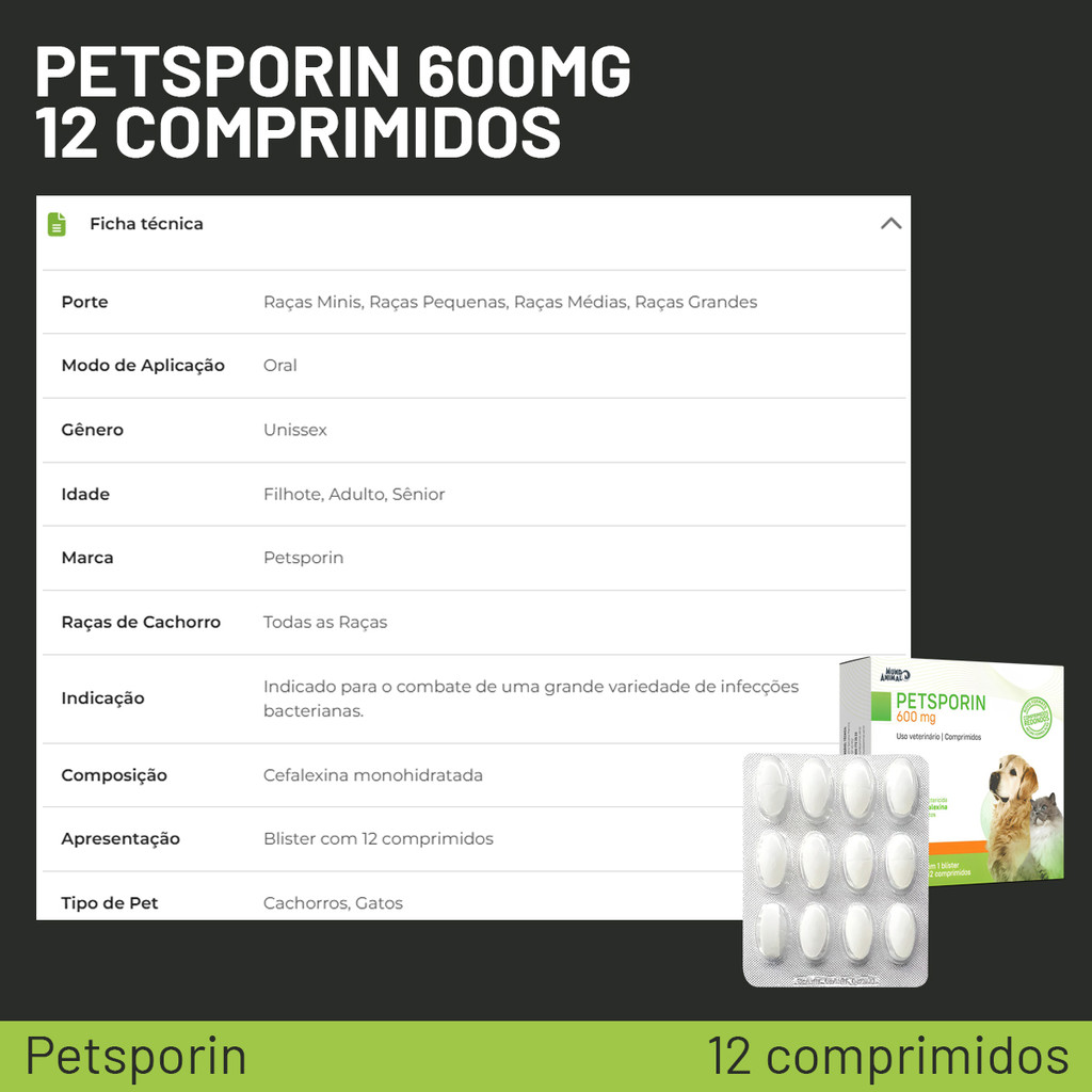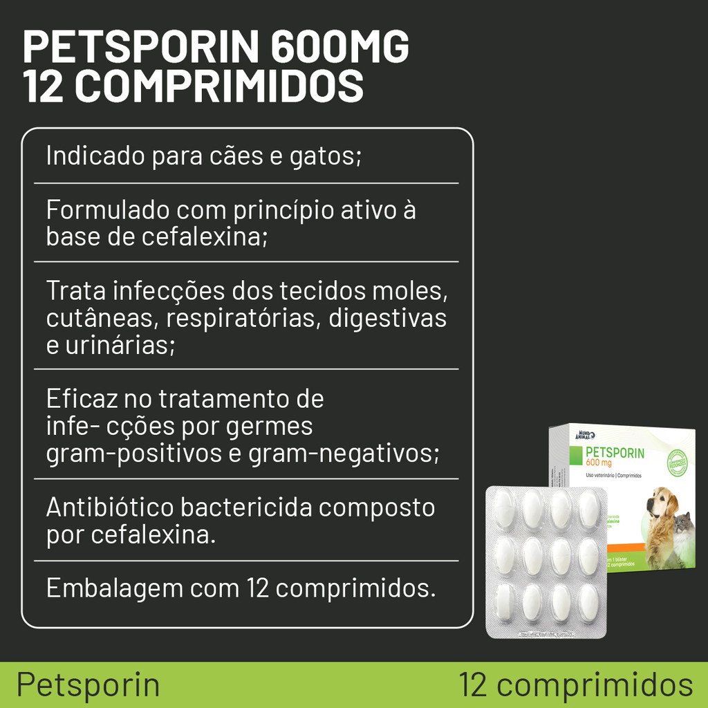 Petsporin 600mg Antibiótico Cães E Gatos Com 12 Comprimidos