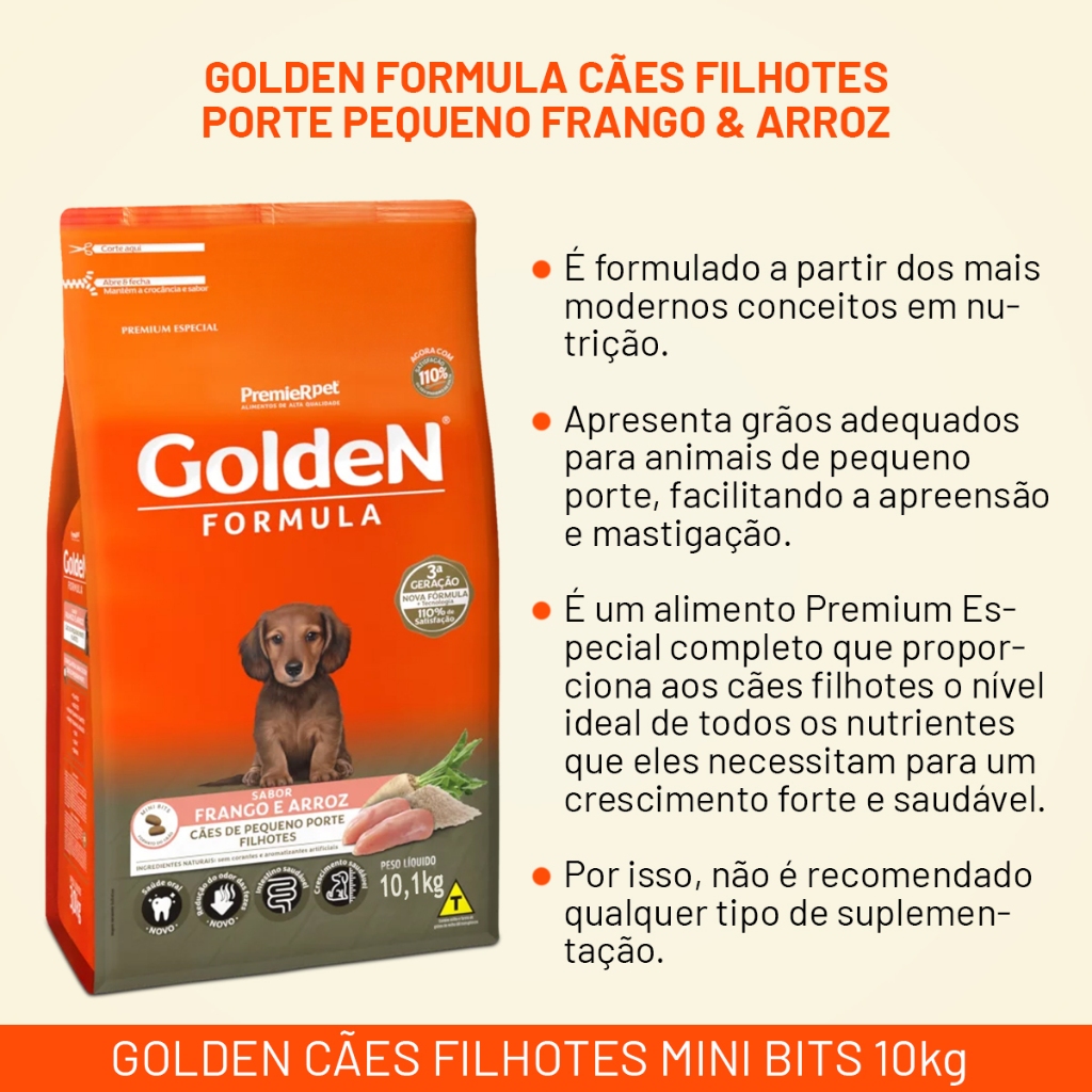 Ração Golden Cães filhotes Mini Bits 10kg Frango & Arroz