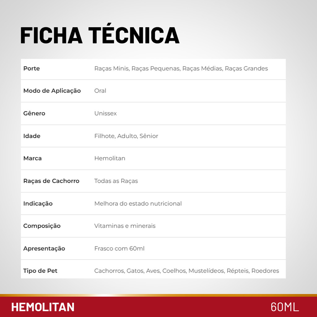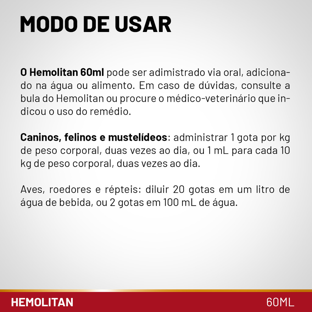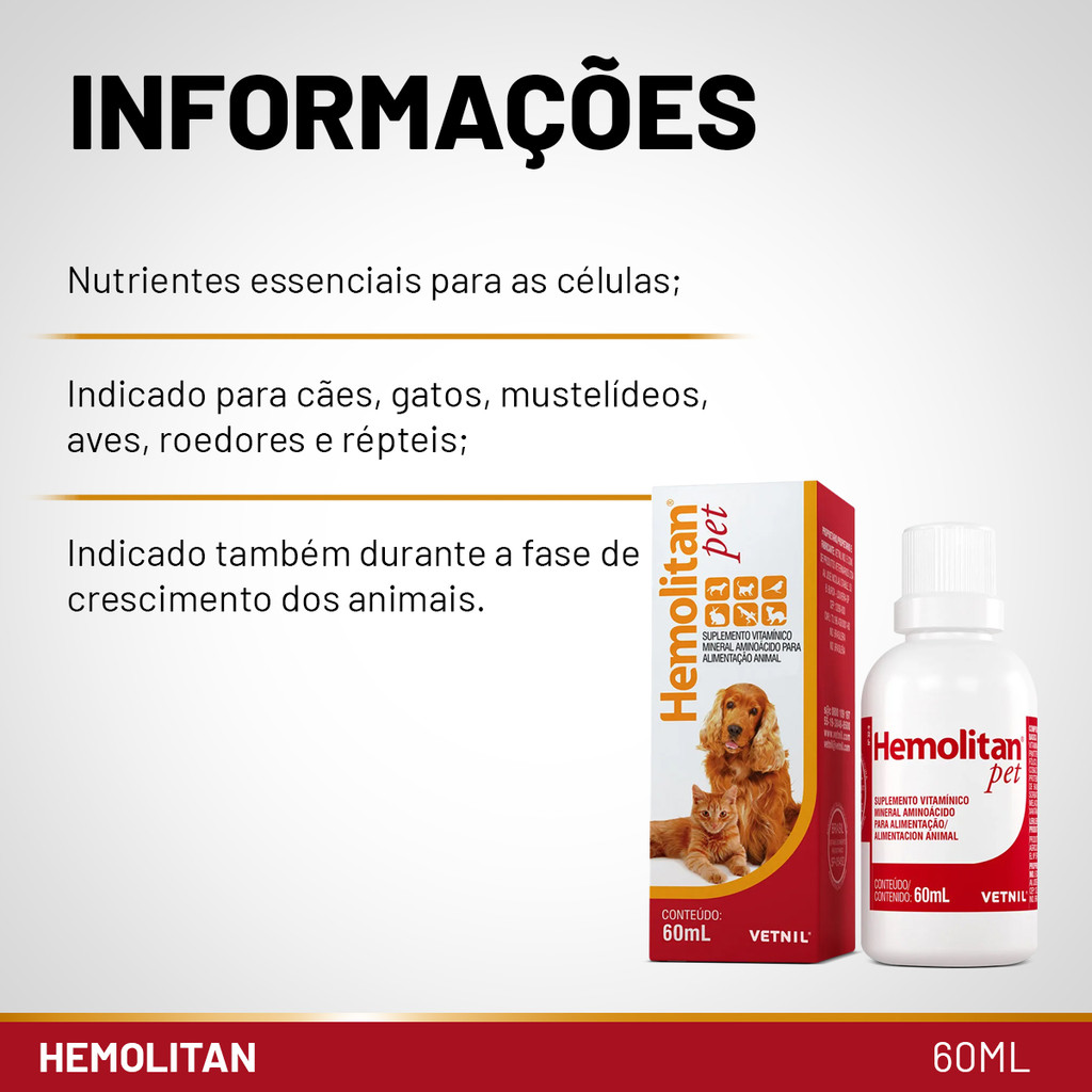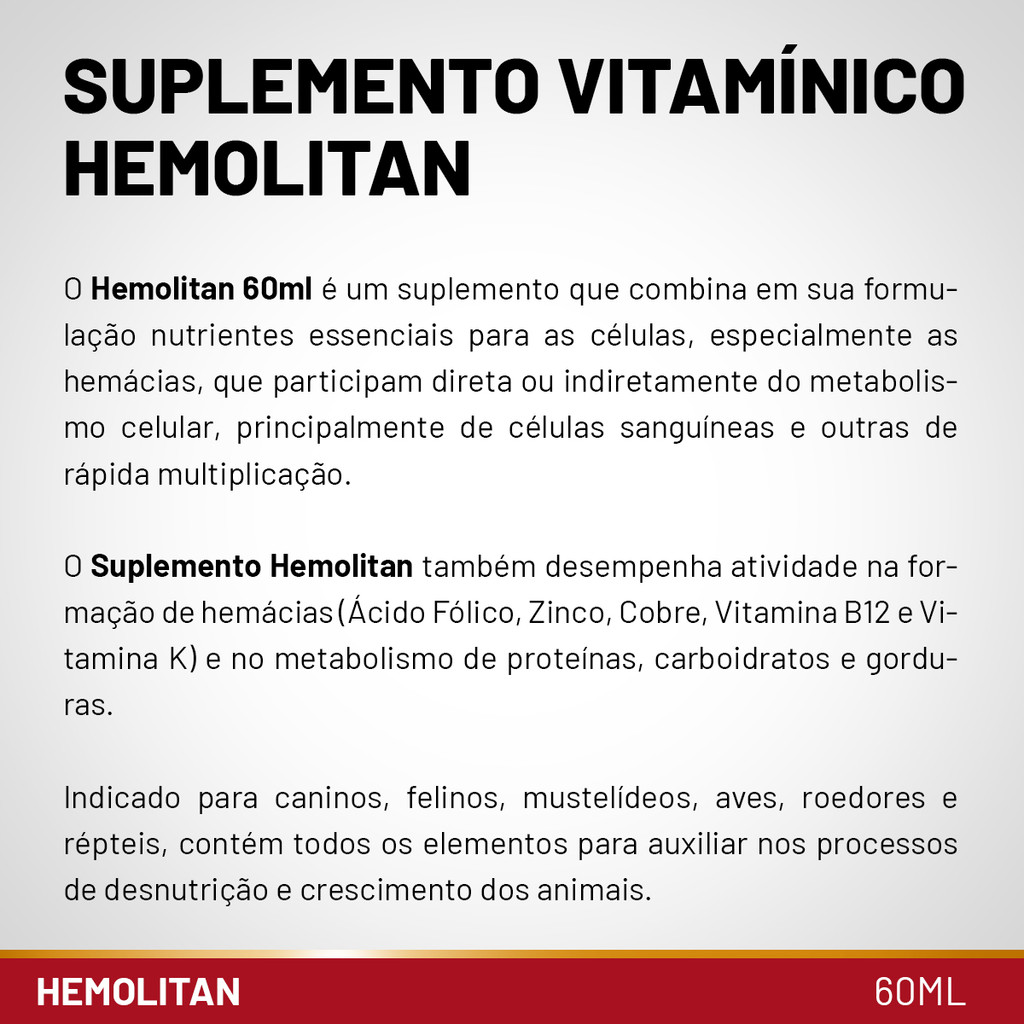 Hemolitan Suplemento Vitamínico Pet P/ Todos Animais 60 Ml