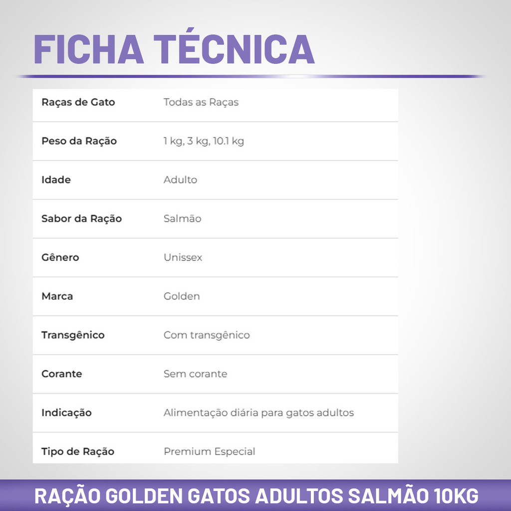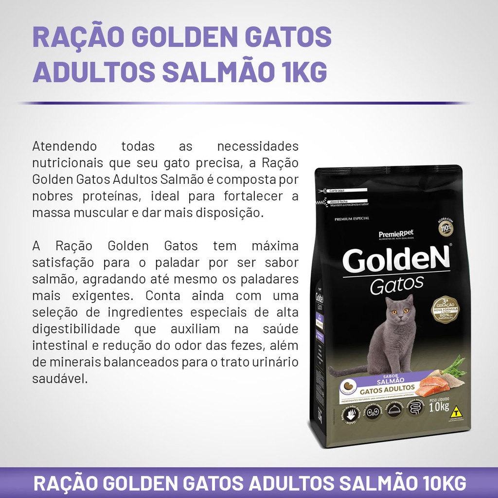 Ração Golden para Gatos Adultos – Sabor Salmão – 10kg