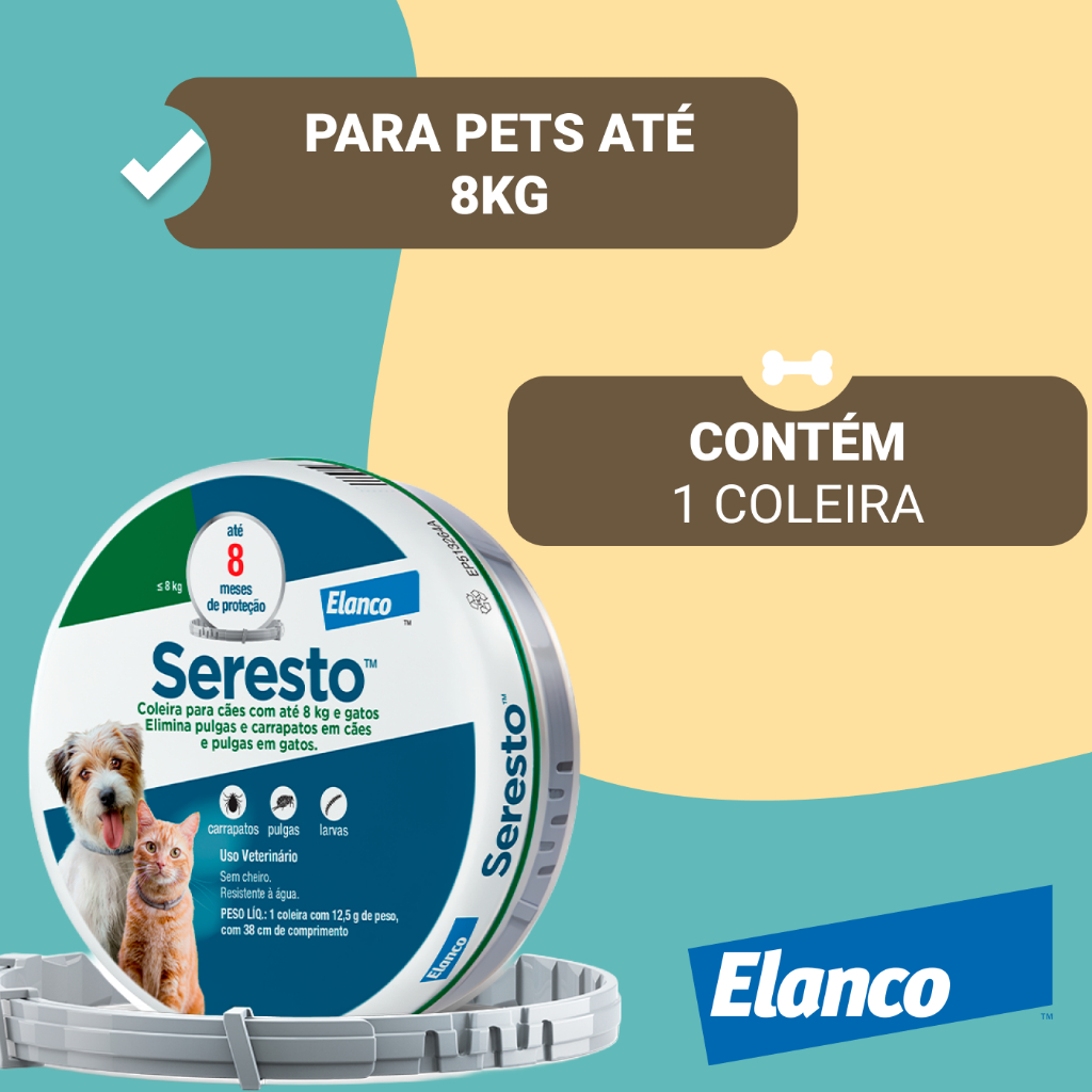 Coleira Seresto Antipulgas Para Cães E Gatos Até 8kg