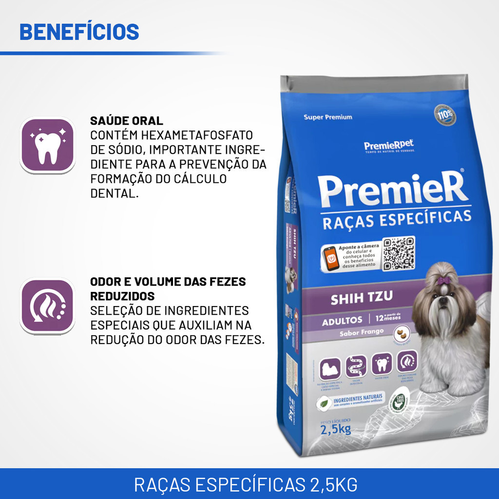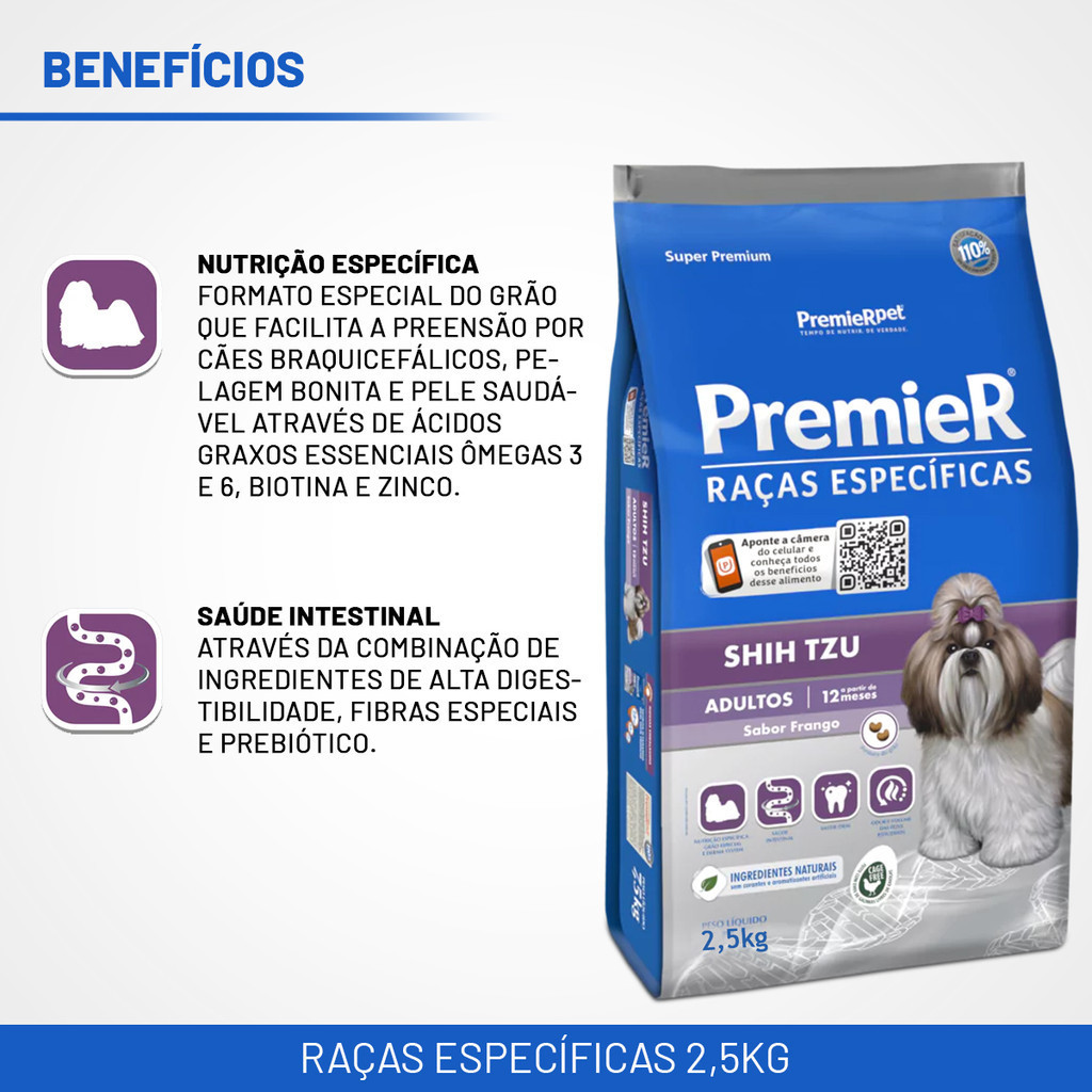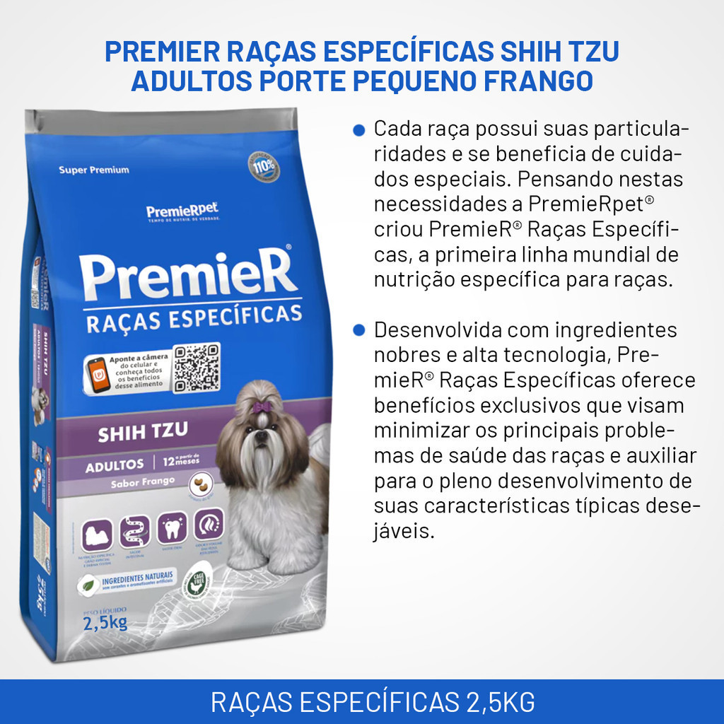 Ração Premier Raças Específicas ShihTzu Adulto 2,5kg Frango