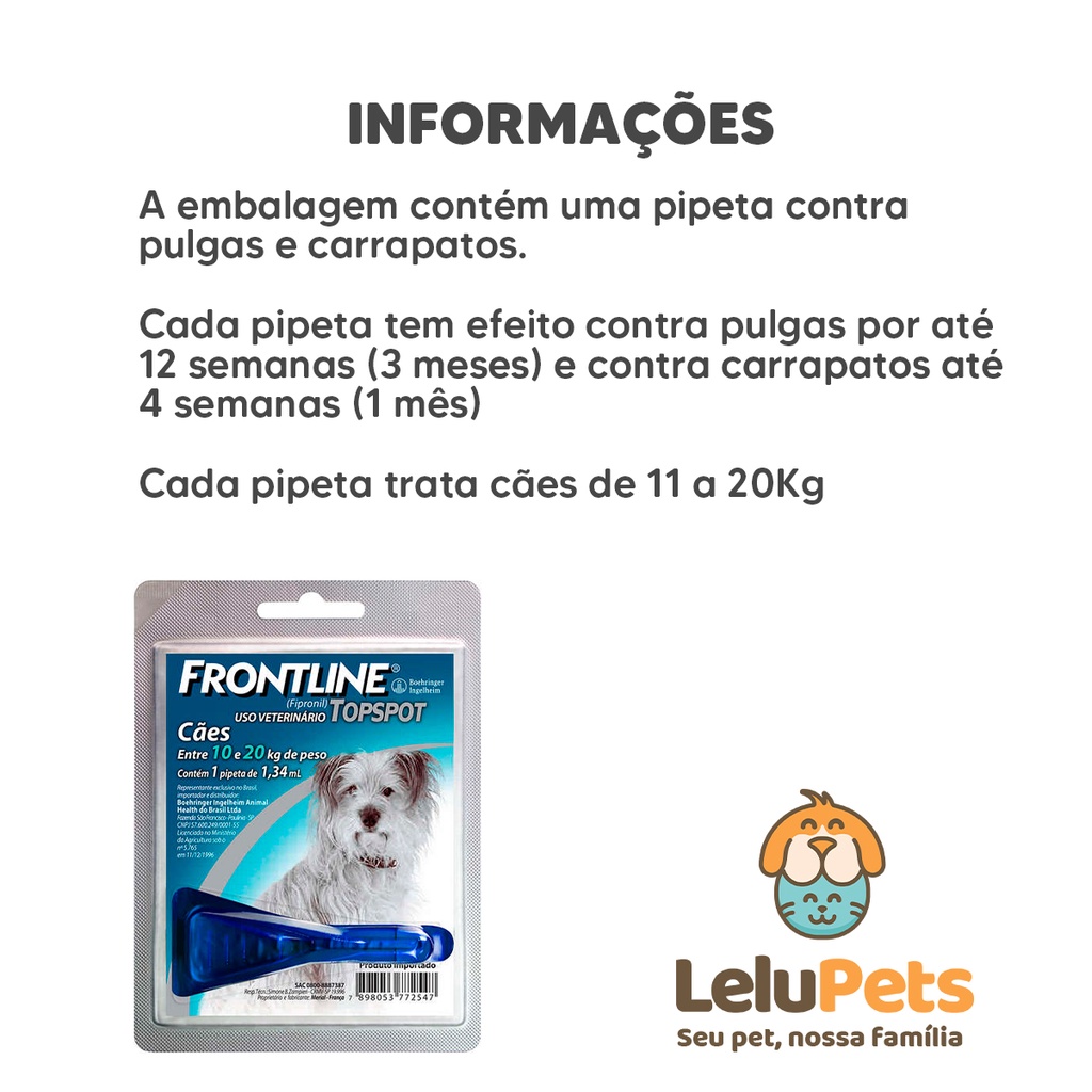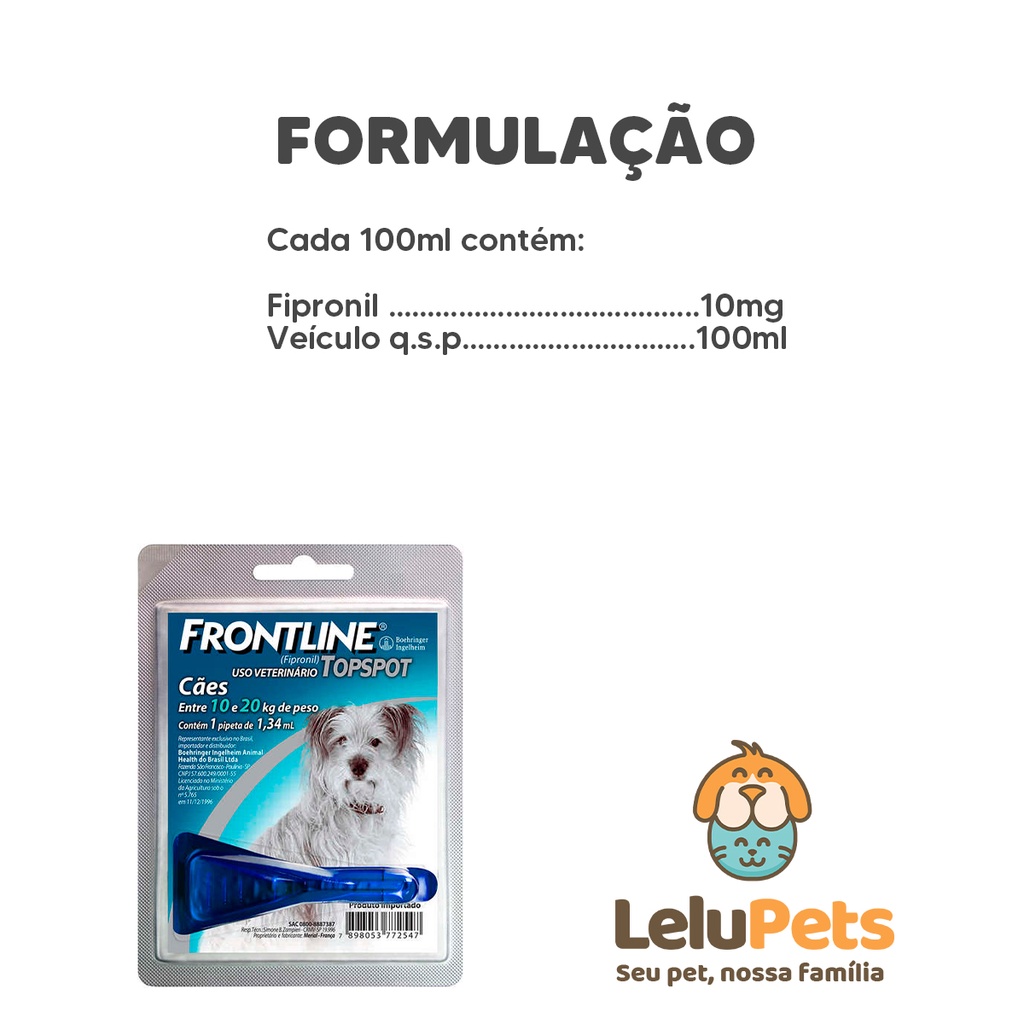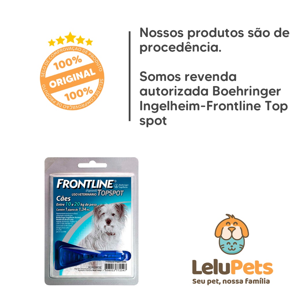 Frontline Top Spot M Cães 10kg a 20kg 1,34 Ml 1 Dose Antipulgas Para Cachorro