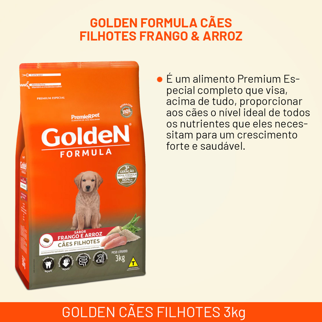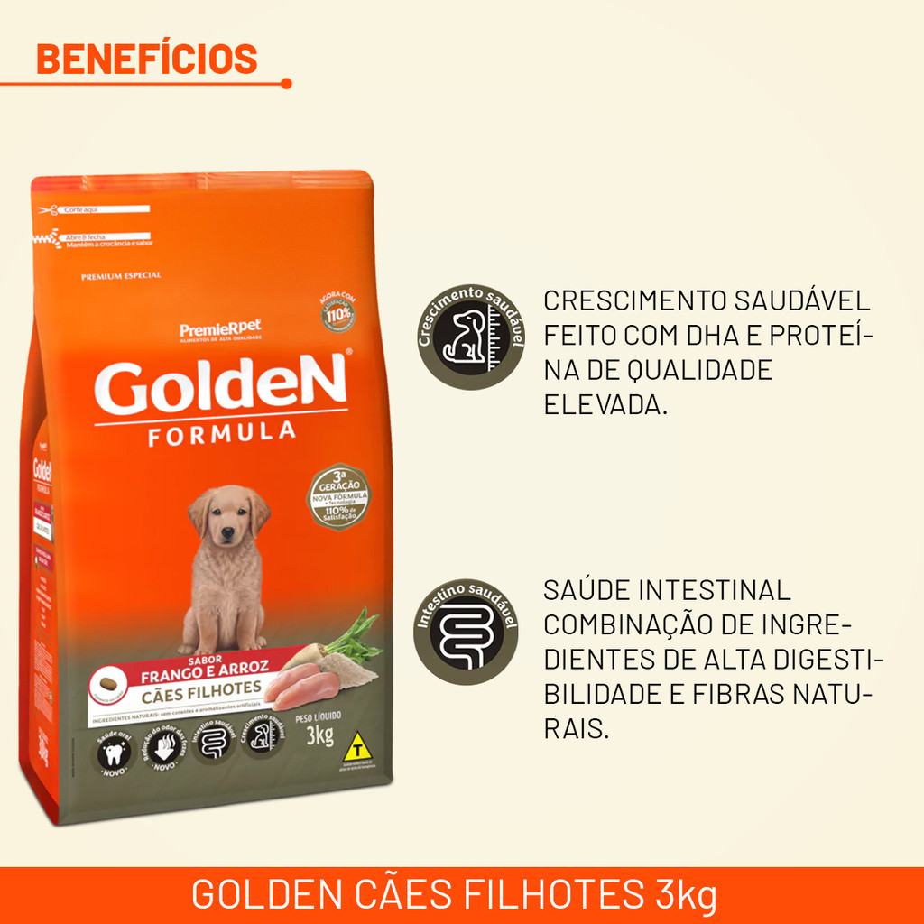 Ração Golden Formula Cães filhotes 3kg Frango & Arroz