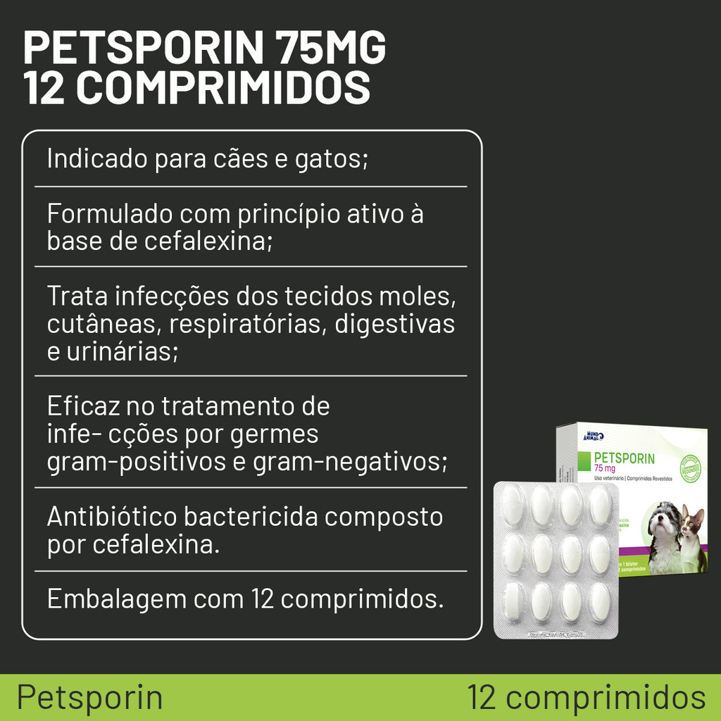 Petsporin 75mg Antibiótico Cães E Gatos Com 12 Comprimidos