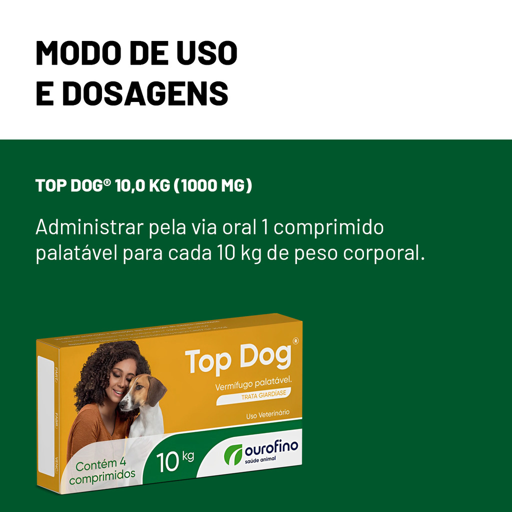 Vermifugo Ouro Fino Top Dog 10kg 4 Comprimidos