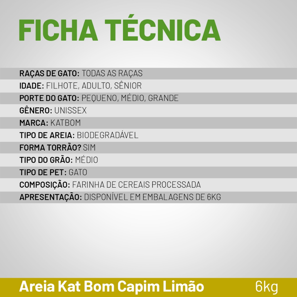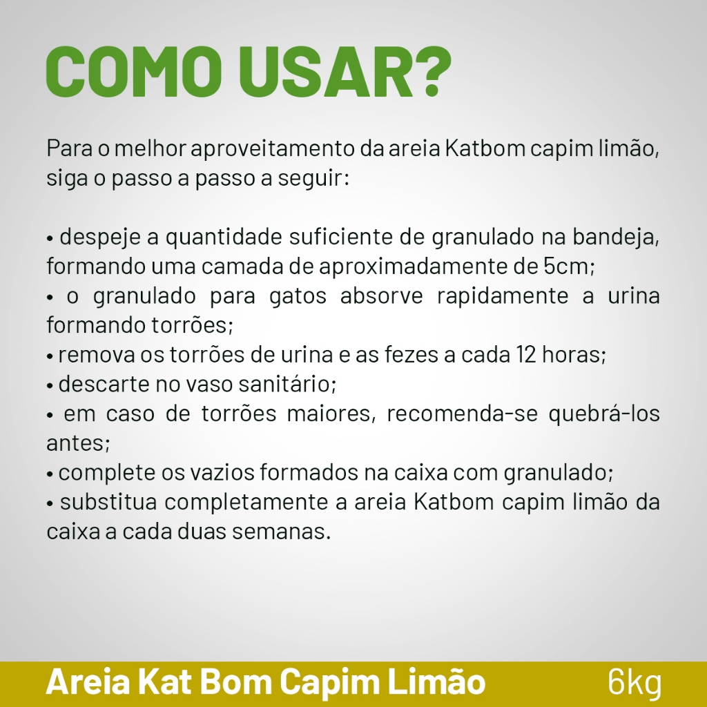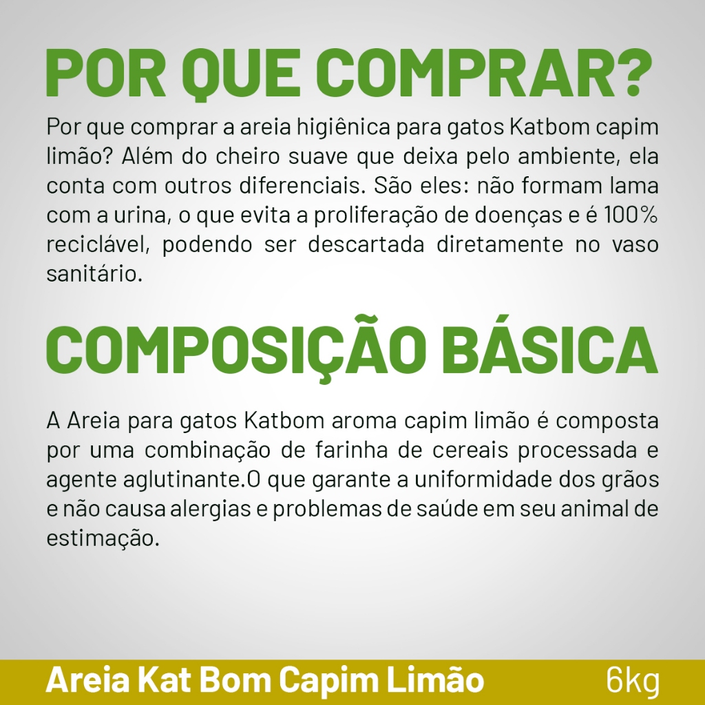 Areia Higiênica Katbom Para Gatos Granulado Capim Limão 6Kg