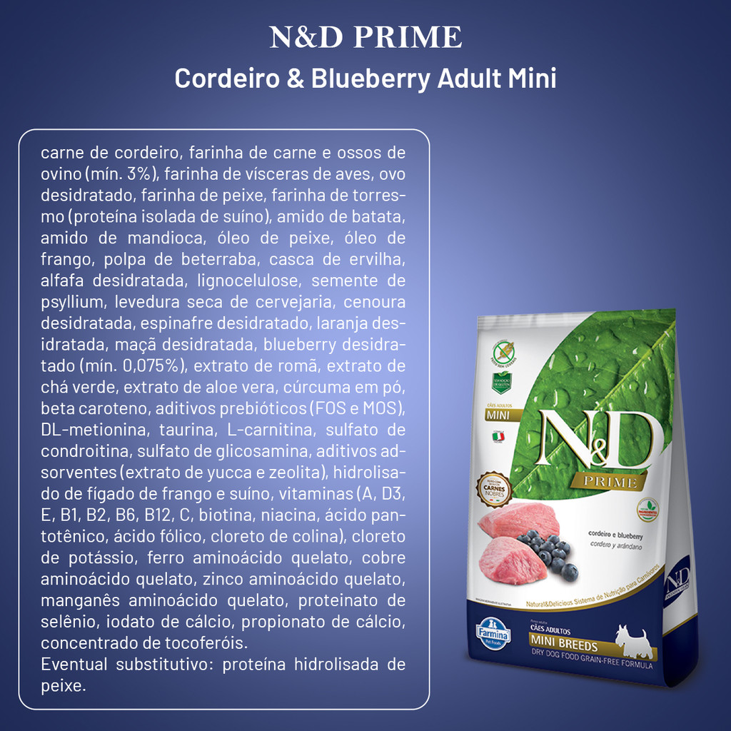 Ração Farmina N&D Prime Cães Mini Cordeiro & Blueberry 2,5kg