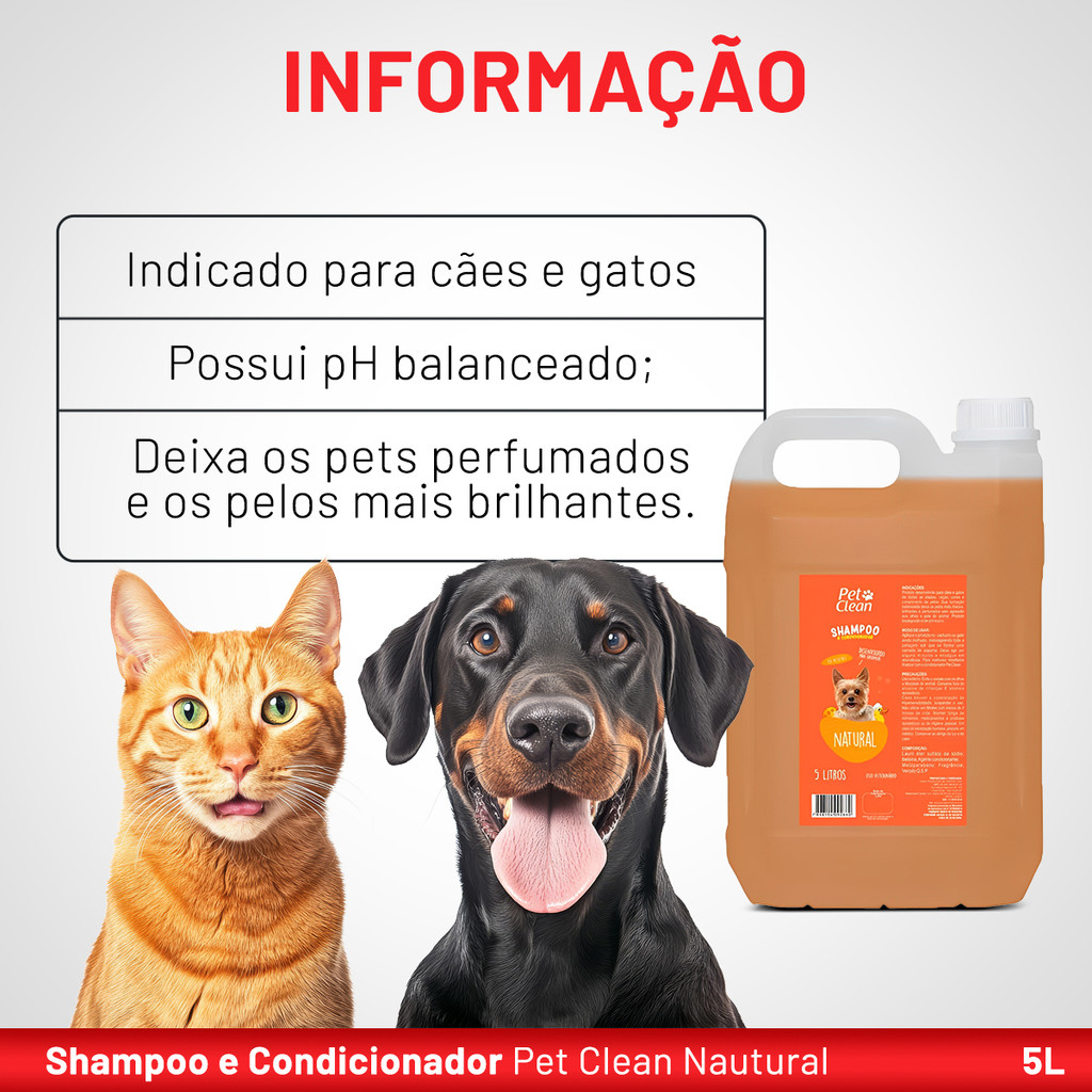 Shampoo e Condicionador Natural Pet Clean Cães e Gatos 5L