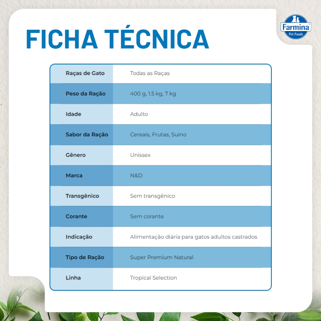 Ração Farmina N&D Gato Castrado Suíno/Frutas Tropicais 1,5kg