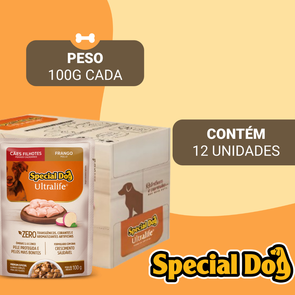 Kit 12 Sachês Special Dog Filhote Frango Ultra Life 100 g