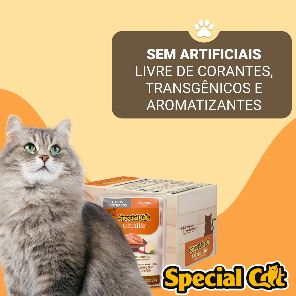 Kit 12 Sachês Special Cat Castrado Salmão Ultra Life 85 g