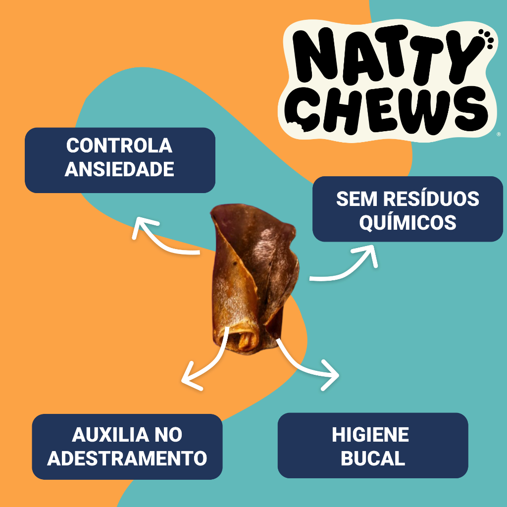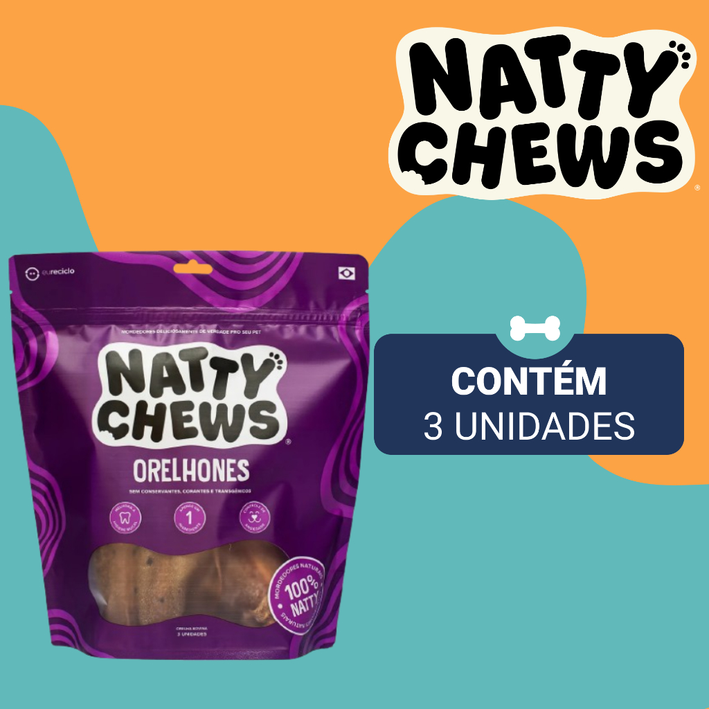 Petisco Orelhones Natty Chews Orelha Bovina 3 Unidades