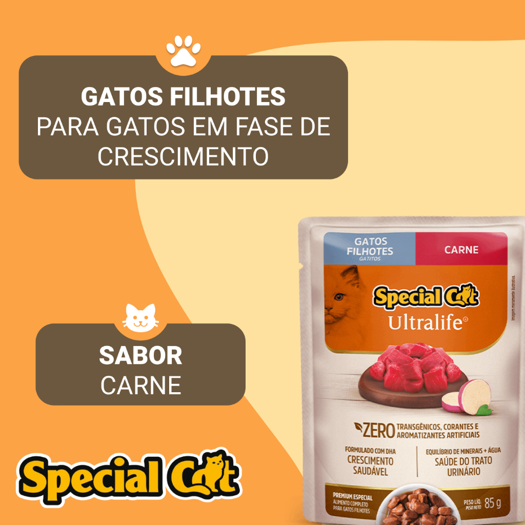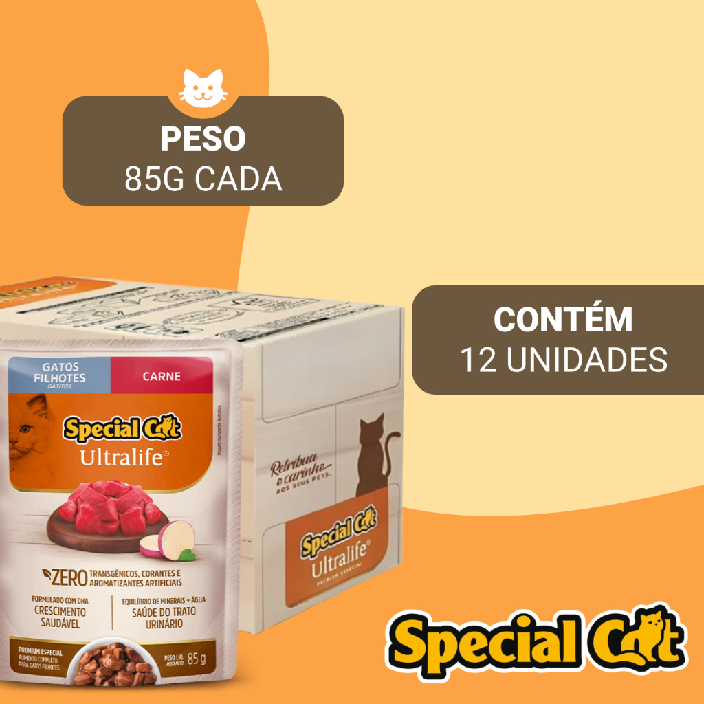 Kit 12 Sachês Special Cat Filhote Carne Ultra Life 85 g
