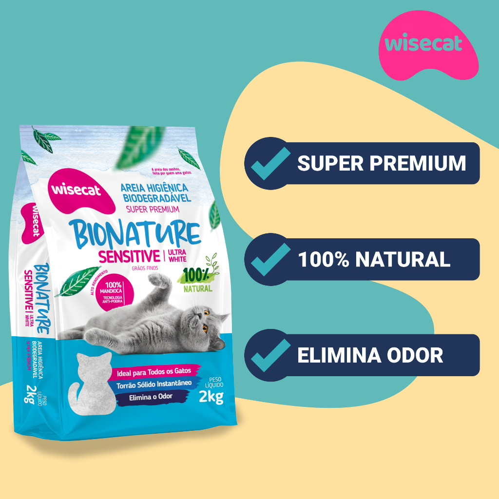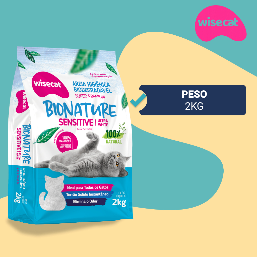 Wisecat - Areia Higiênica Bionature (Azul) - Biodegradável - Sensitive - Super Premium - 2 Kg