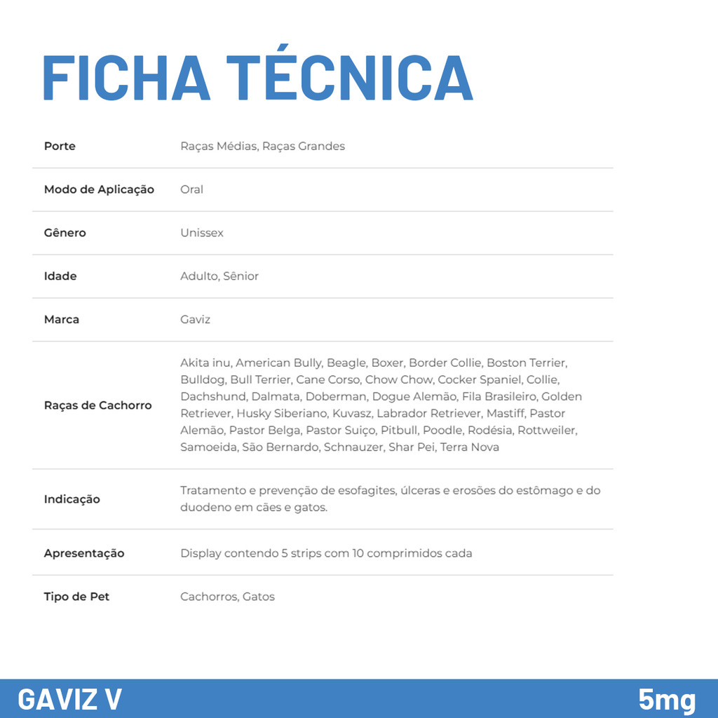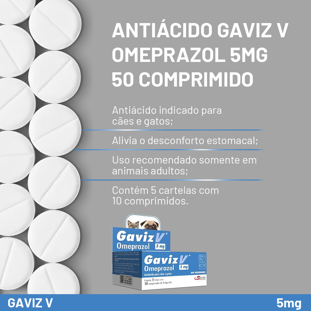 Gaviz V - 5mg - Omeprazol Strip - 10 Comprimidos