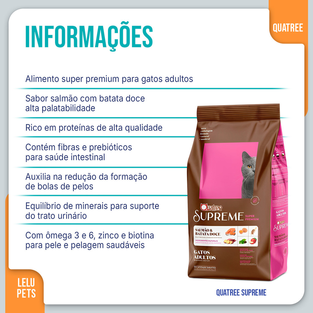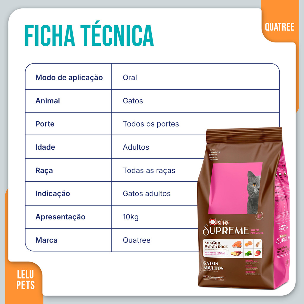 Ração Quatree Supreme Salmão e Batata Doce para Gatos Adultos10kg