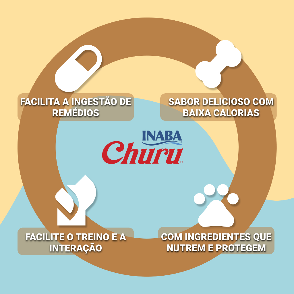 Churu Dog Inaba Petisco Cremoso Para Cães 54 g - Contém 4 Sachês de 14 g Cada - Diversos Sabores