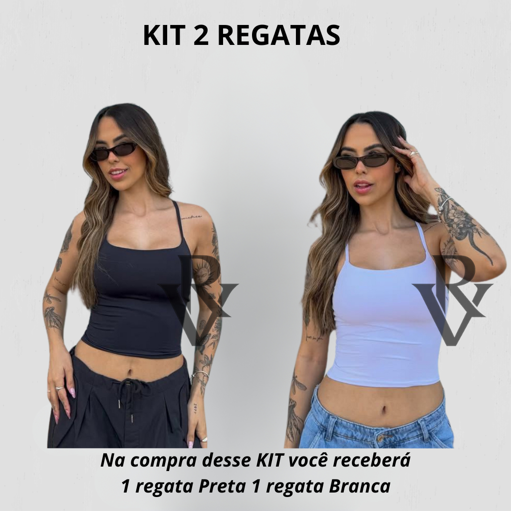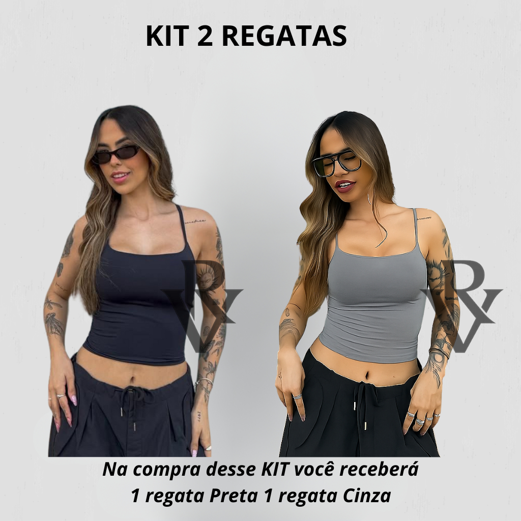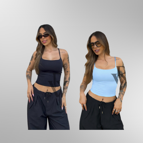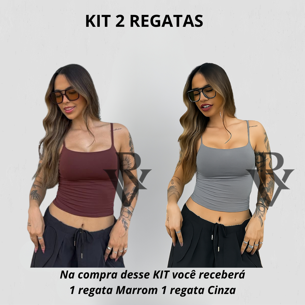 Kit 2 Regata De Alcinha Cropped Tube Feminino Básico Suplex Marrom Azul