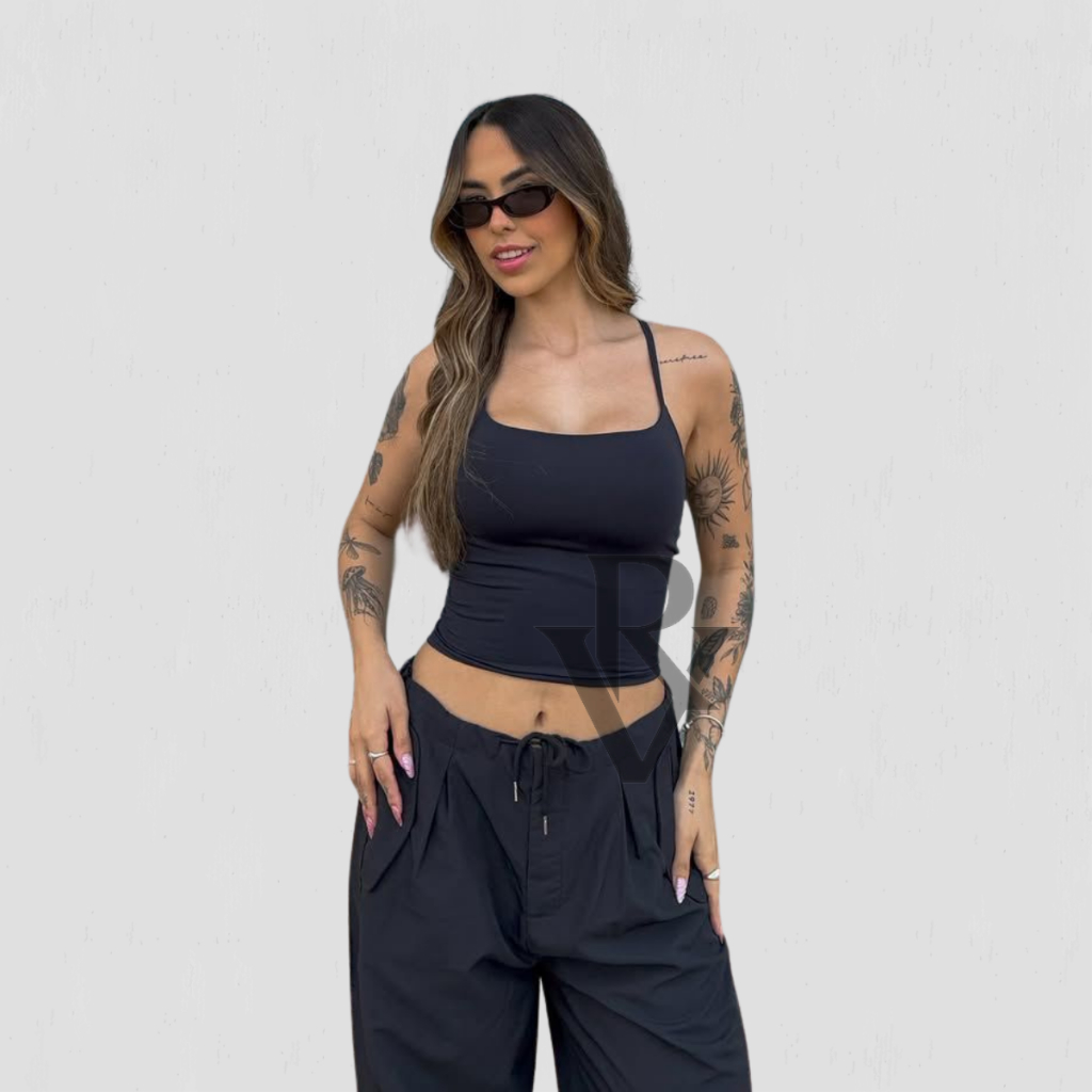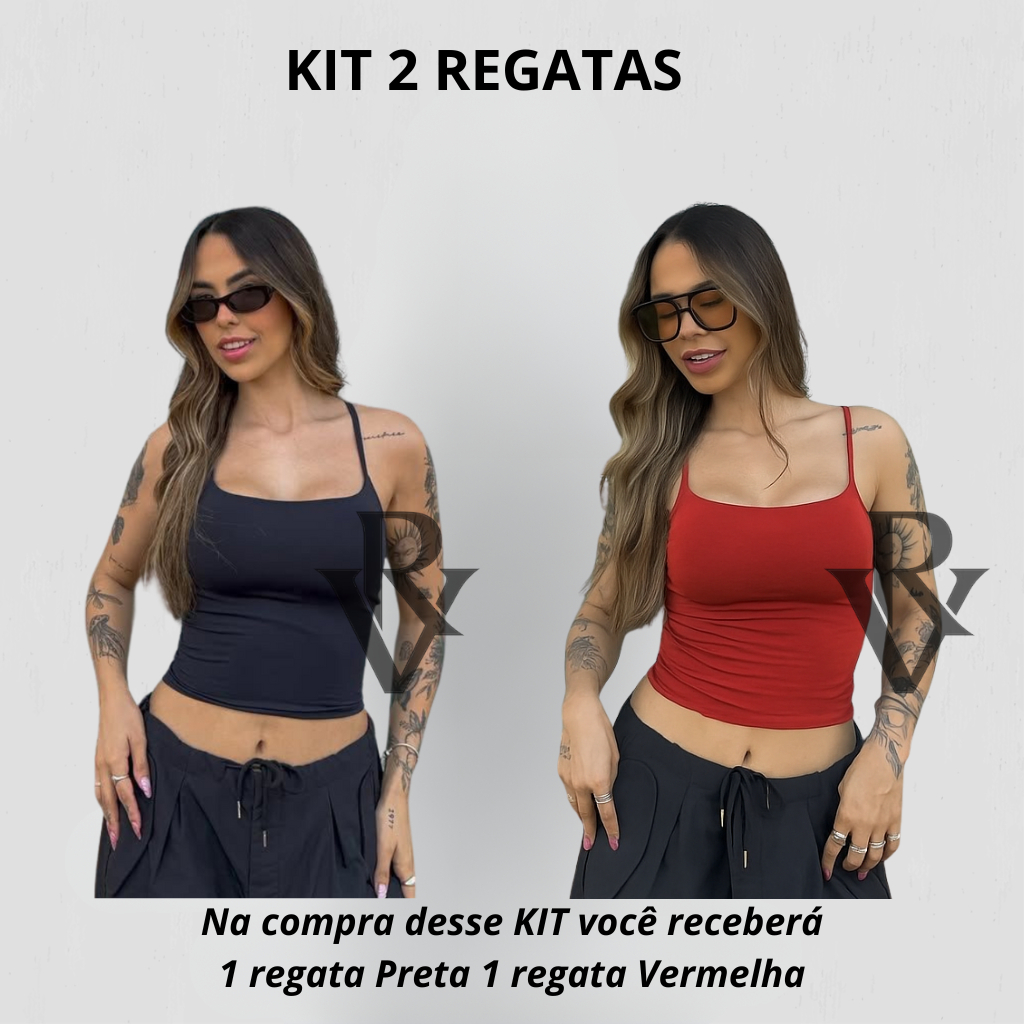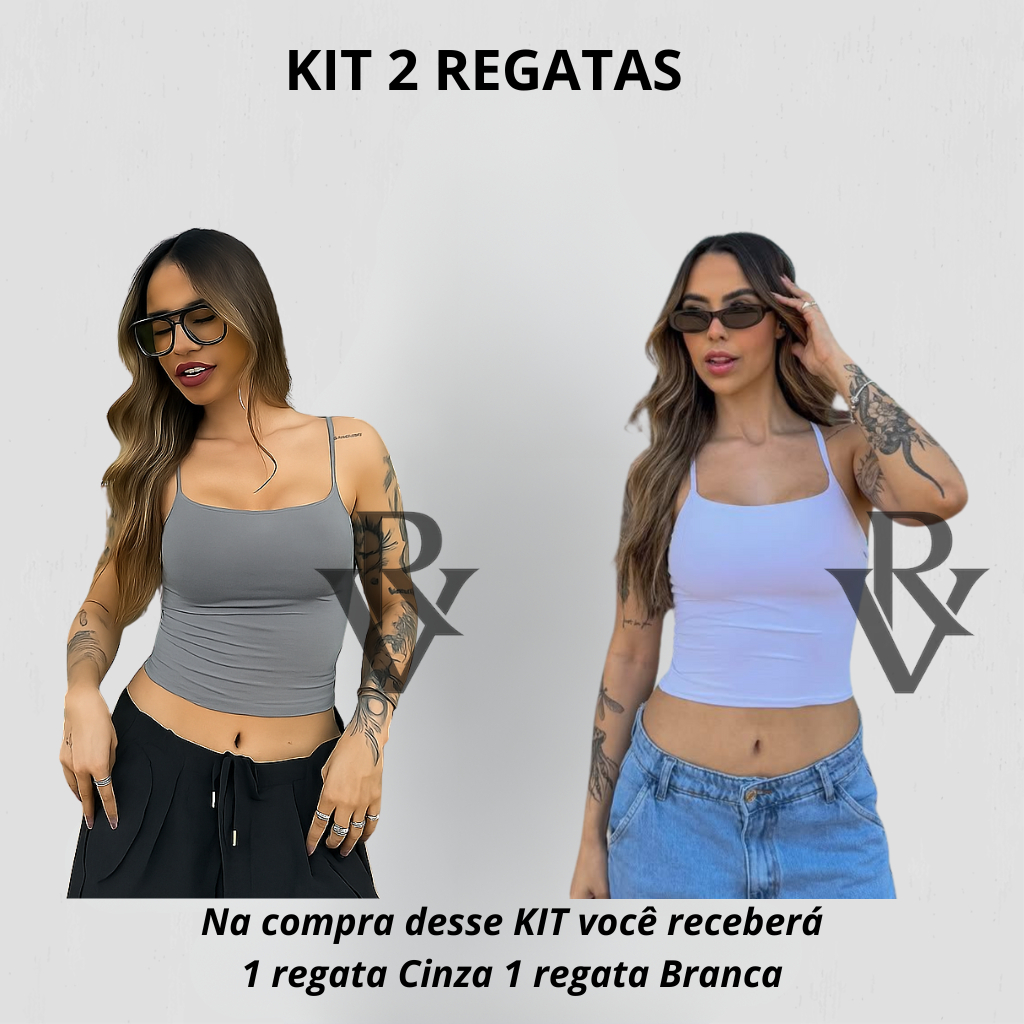 Kit 2 Regata De Alcinha Cropped Tube Feminino Básico Suplex Marrom Azul