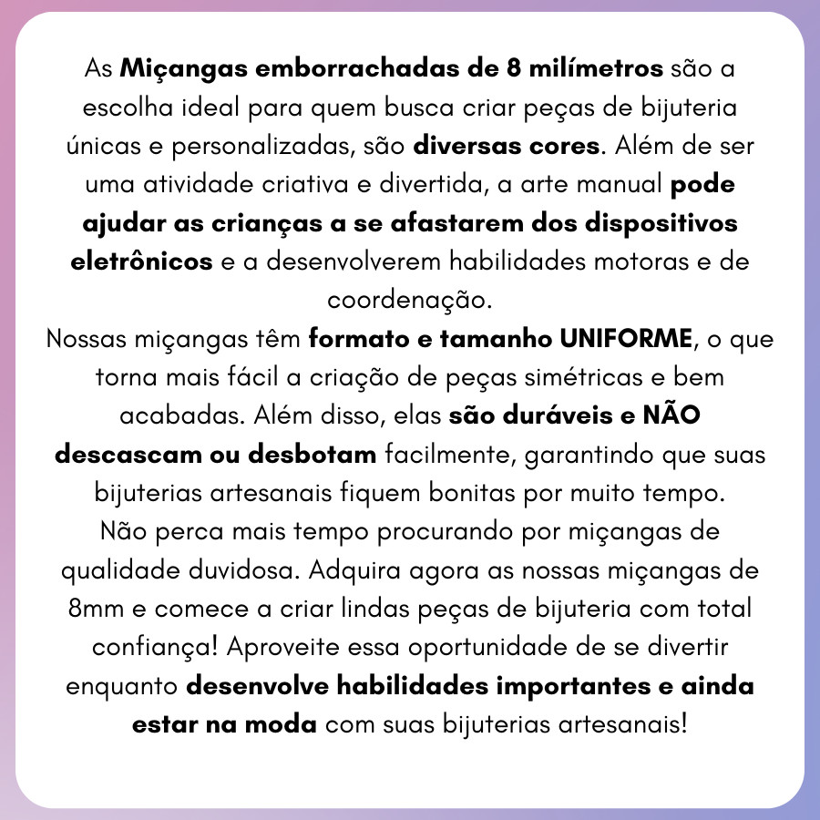 Miçanga emborrachada 8mm monte seu kit de 500g - 2500g