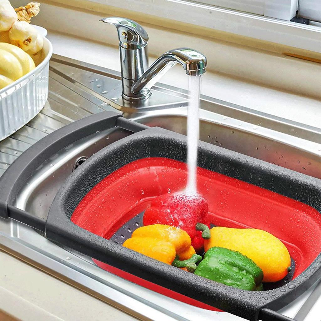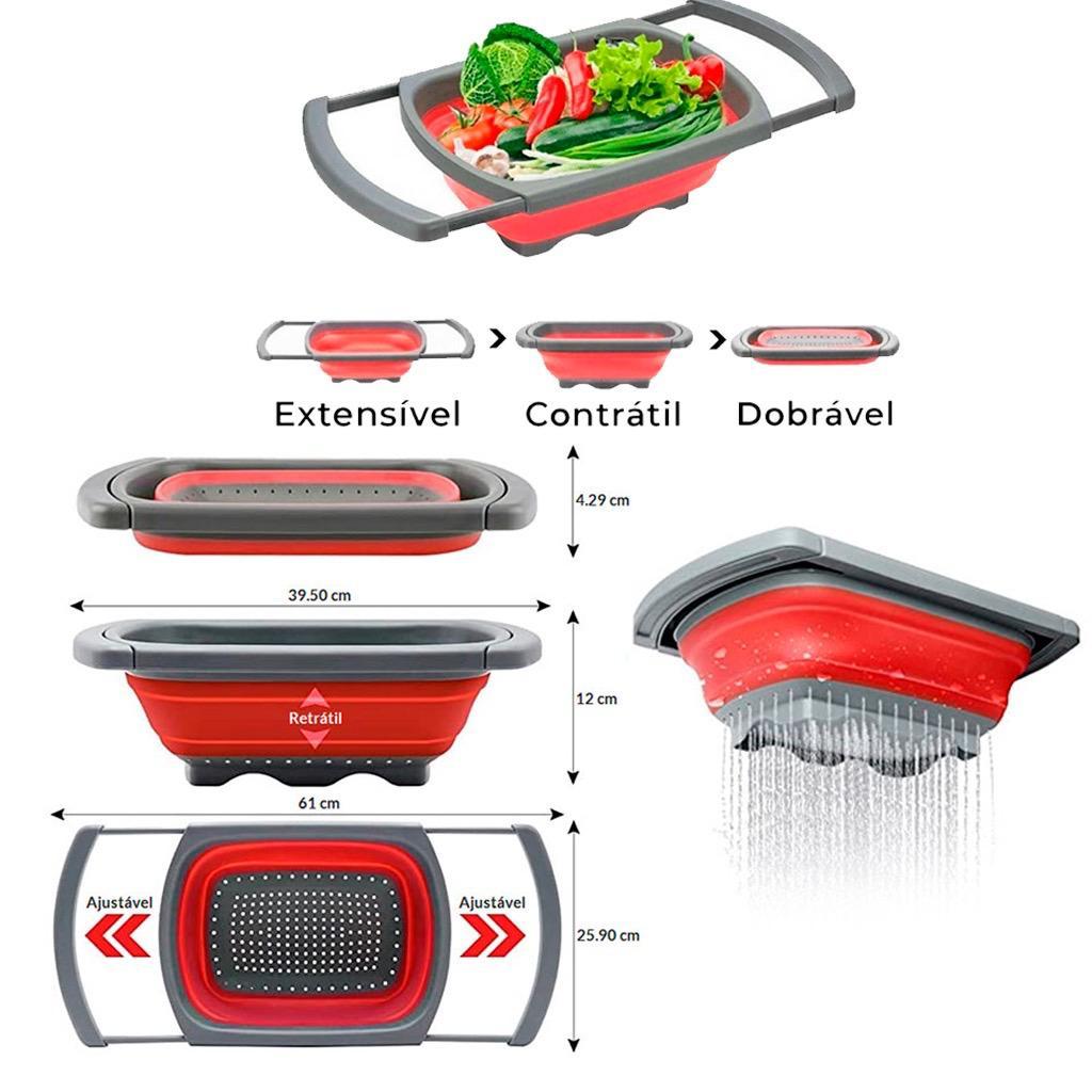 Escorredor de Pia para Alimentos de Silicone Retrátil com Alças
