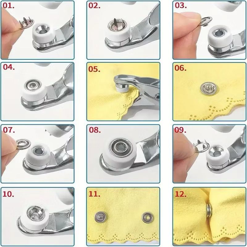 Alicate Aplicador Com 100 Botões De Metal De Pressão Para Roupa