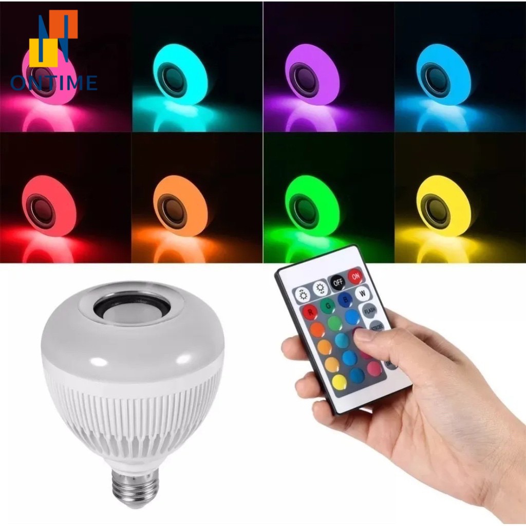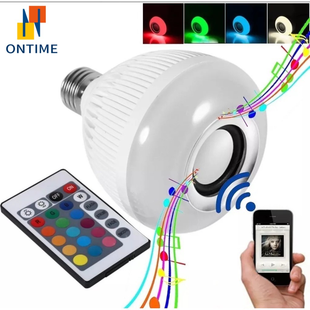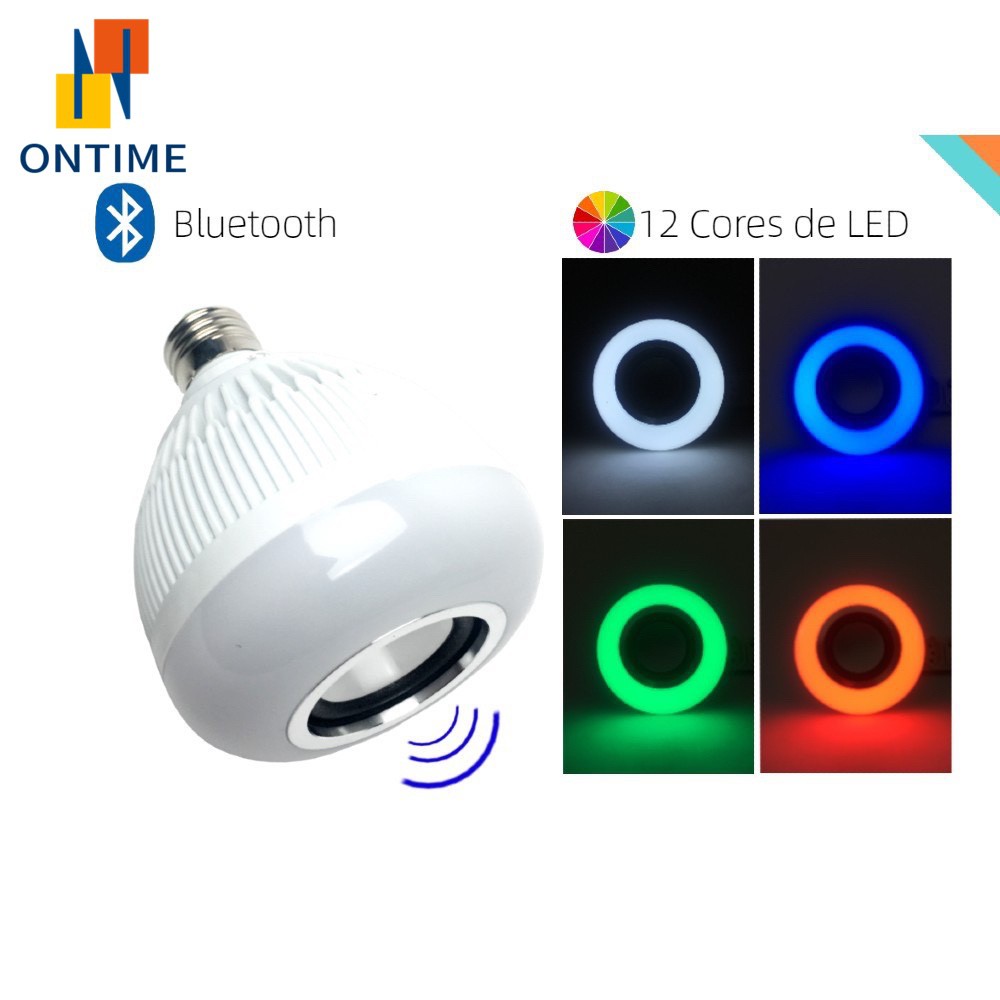Lâmpada Luz Led Colorida 16 Cores 12w Caixinha de Som Bluetooth Music Bulb + Controle