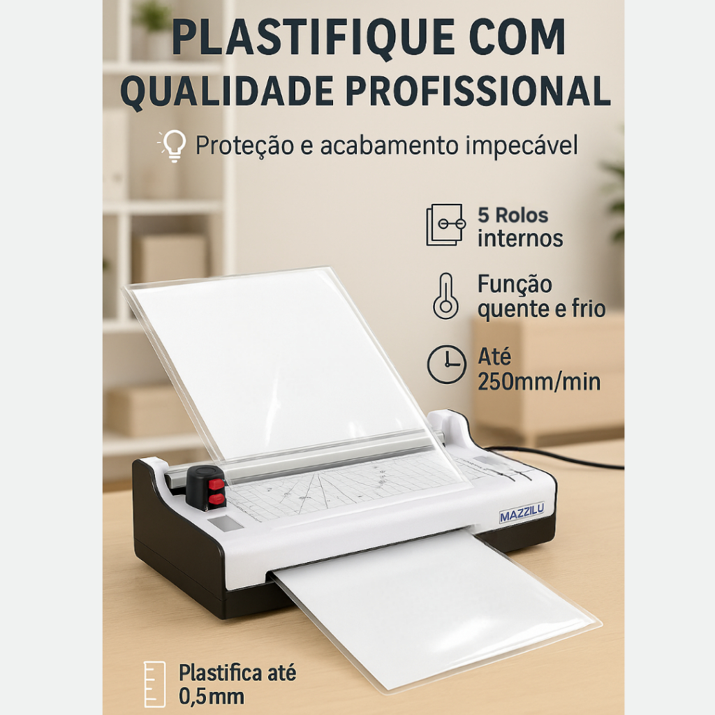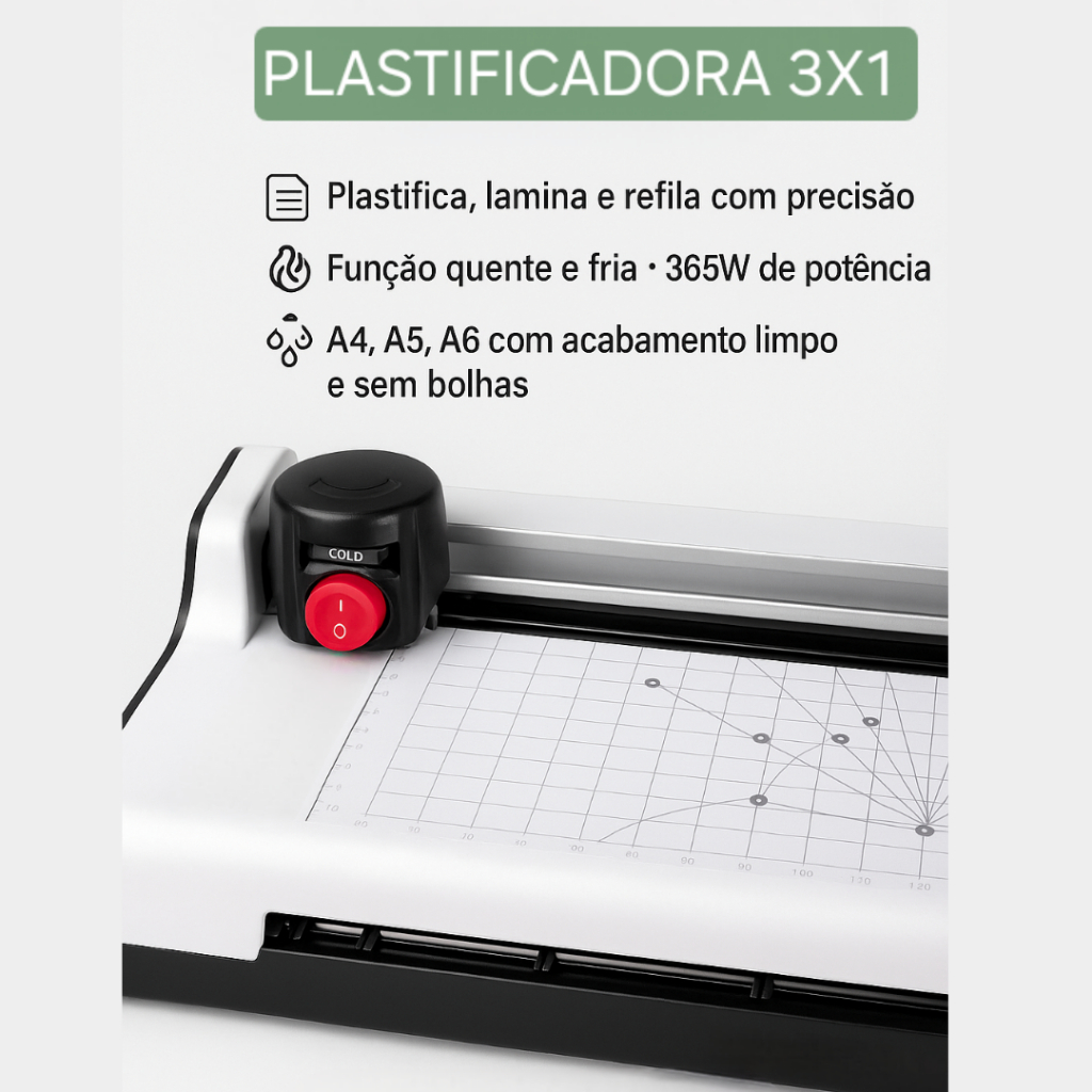 Plastificadora Laminadora Refiladora MA-320 – 3 em 1 | A4, A5, A6 | Modos Quente e Frio