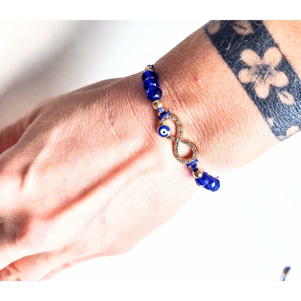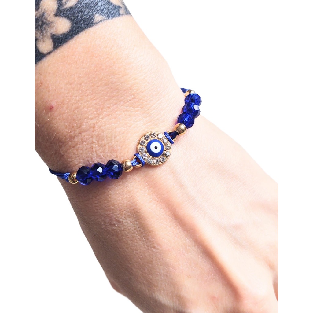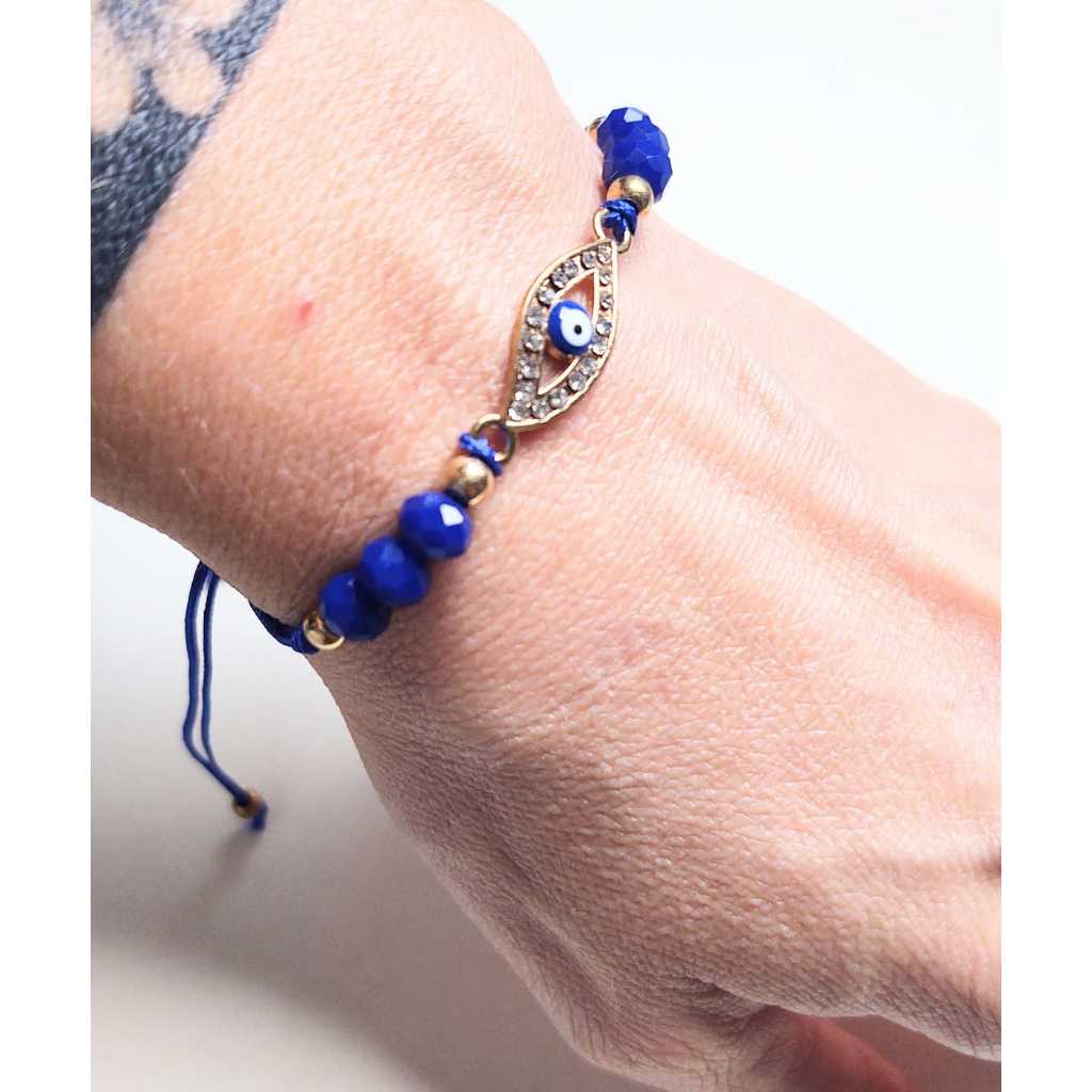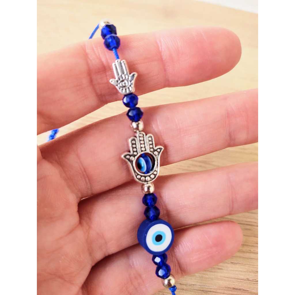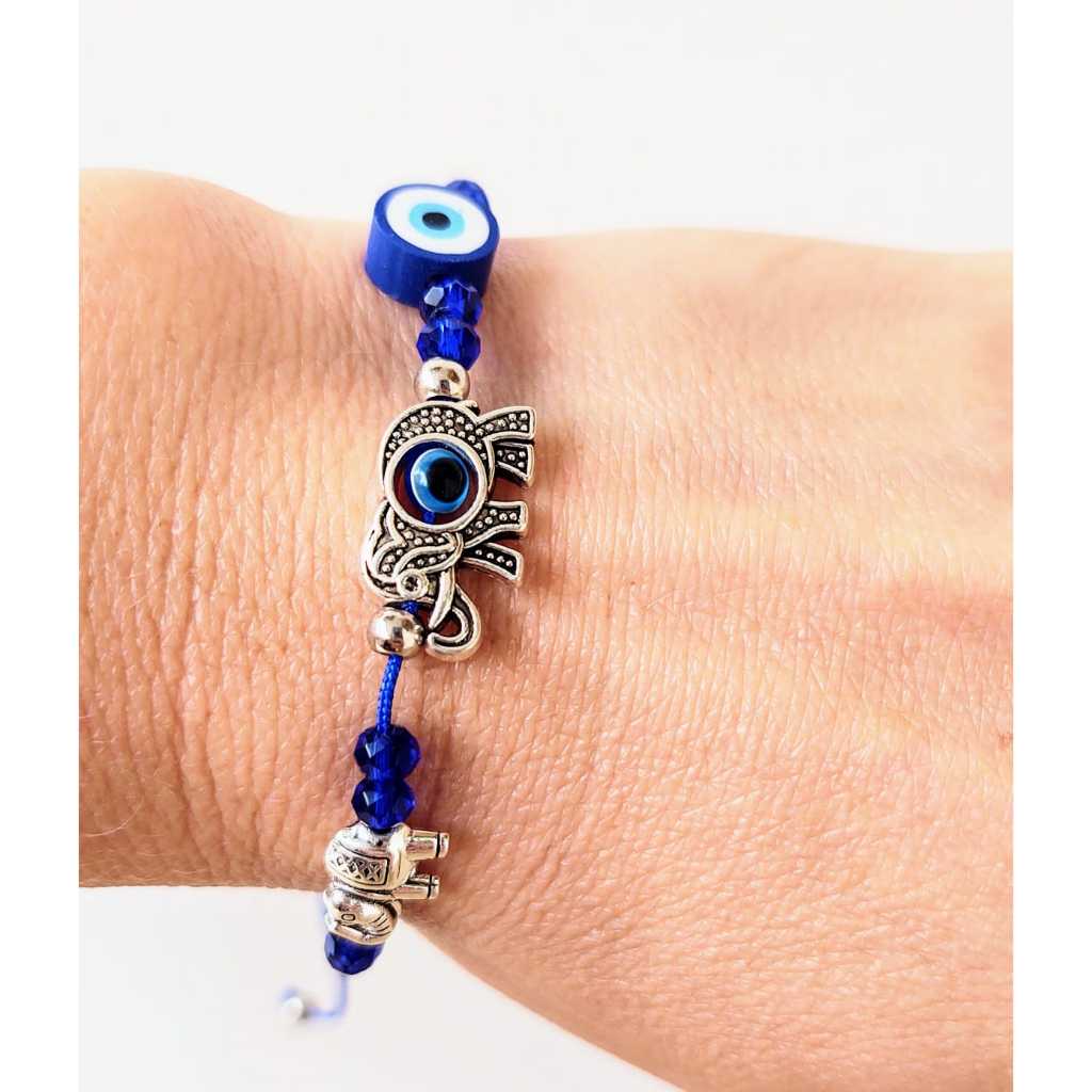 Pulseira Ajustável Olho Grego Mão Hamsa Com Strass Brilho Mão De Fátima Bijuteria