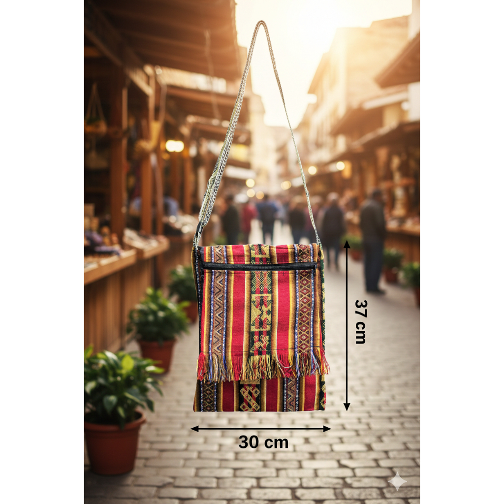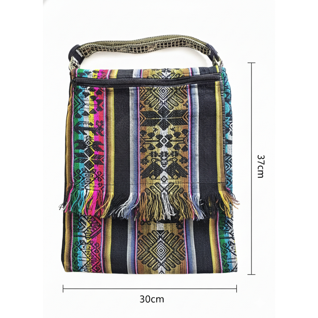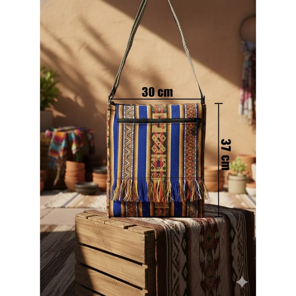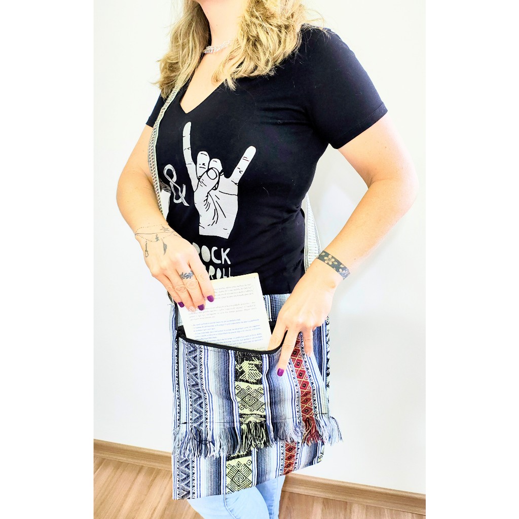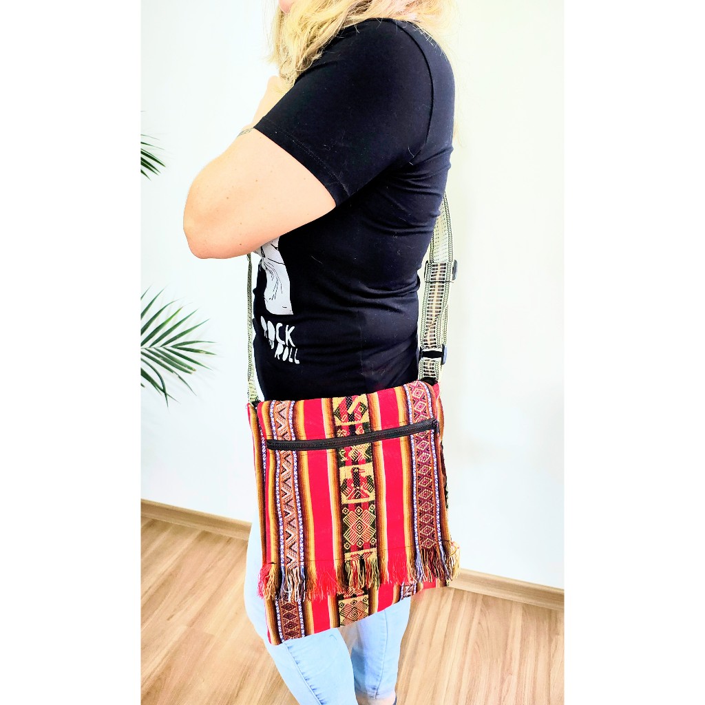 BOLSA PERUANA LATERAL TRANSVERSAL BOHO FRANJINHA GRANDE
