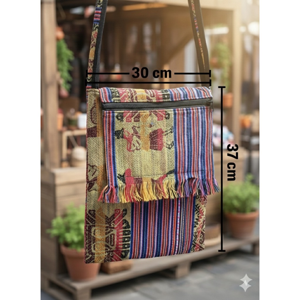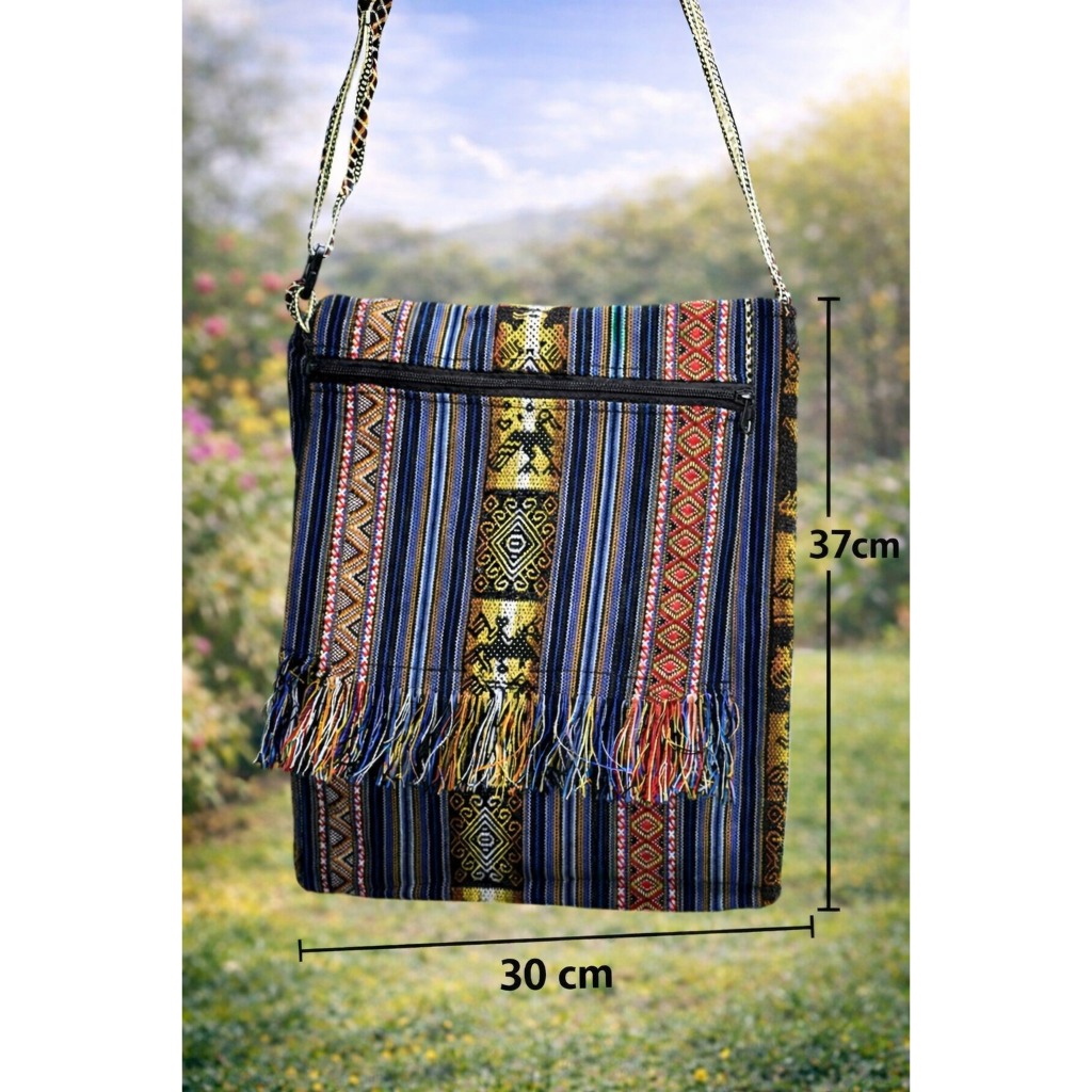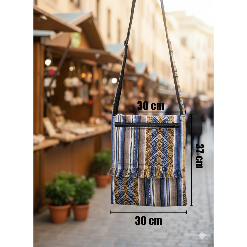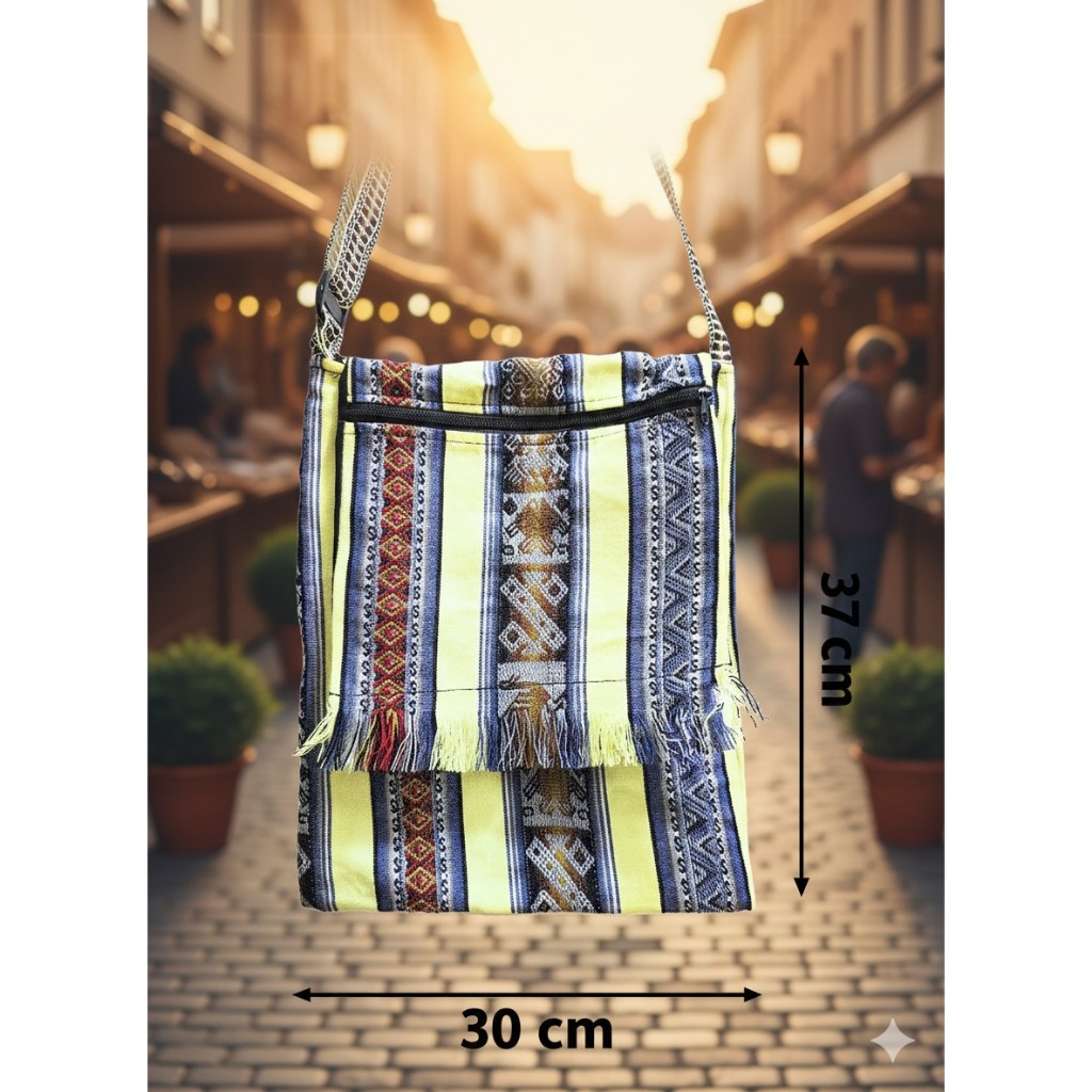 BOLSA PERUANA LATERAL TRANSVERSAL BOHO FRANJINHA GRANDE