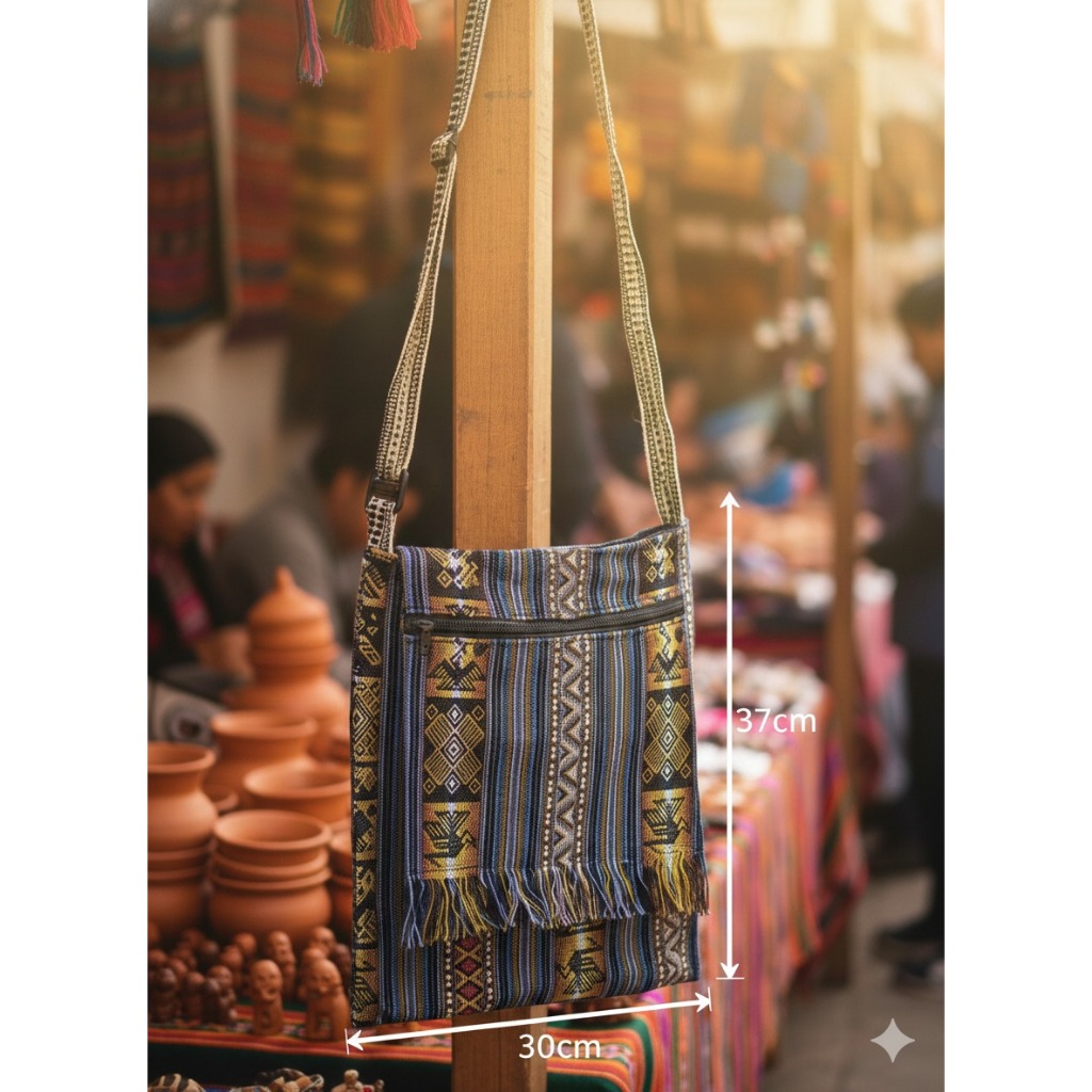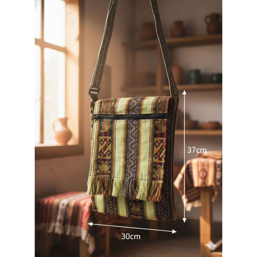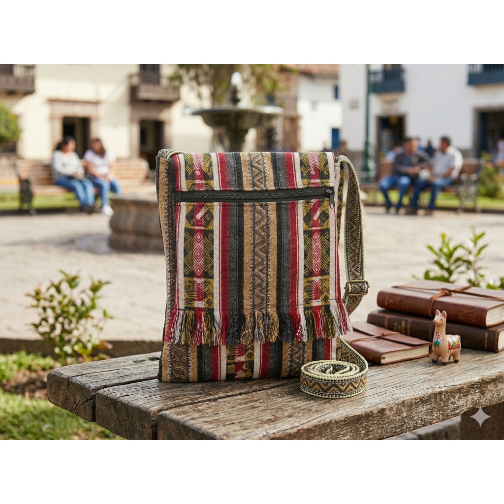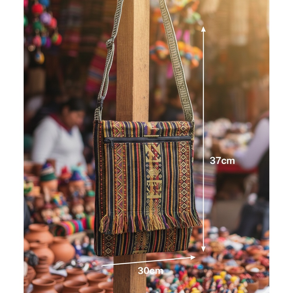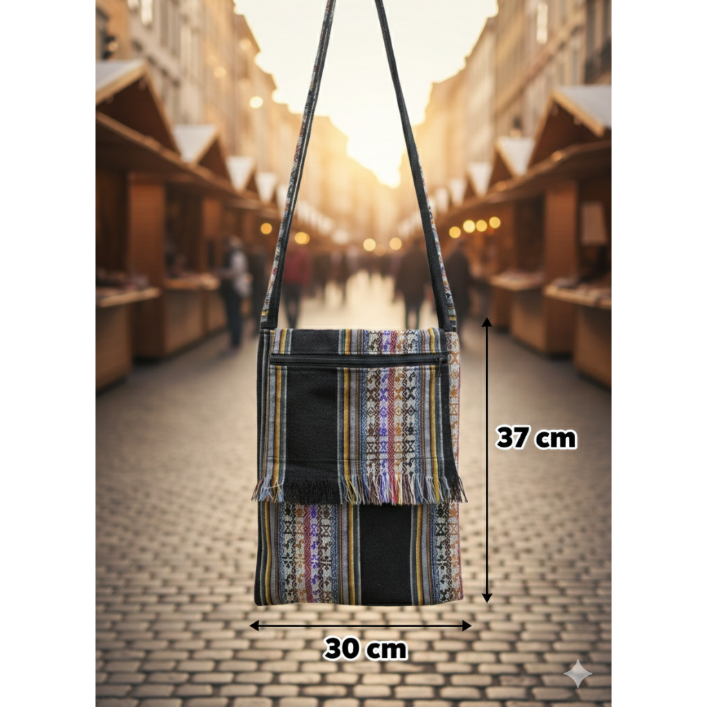BOLSA PERUANA LATERAL TRANSVERSAL BOHO FRANJINHA GRANDE