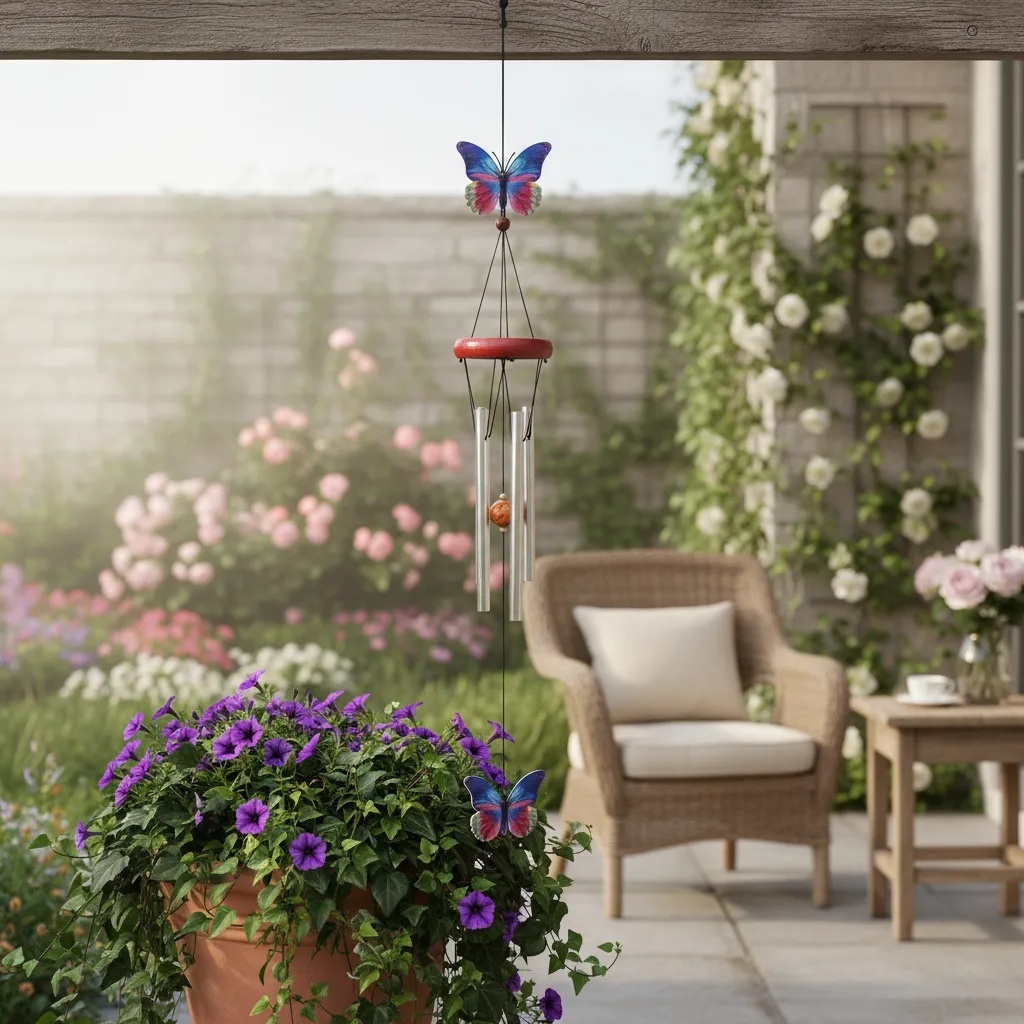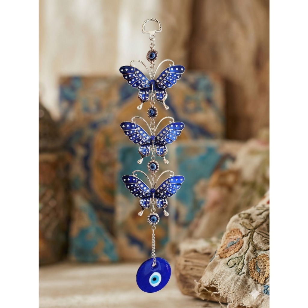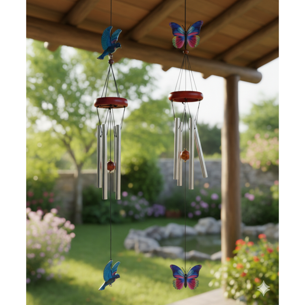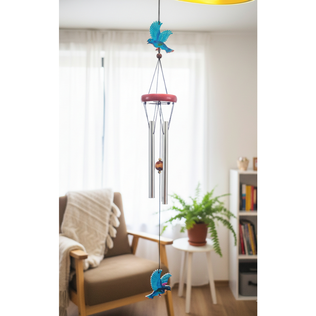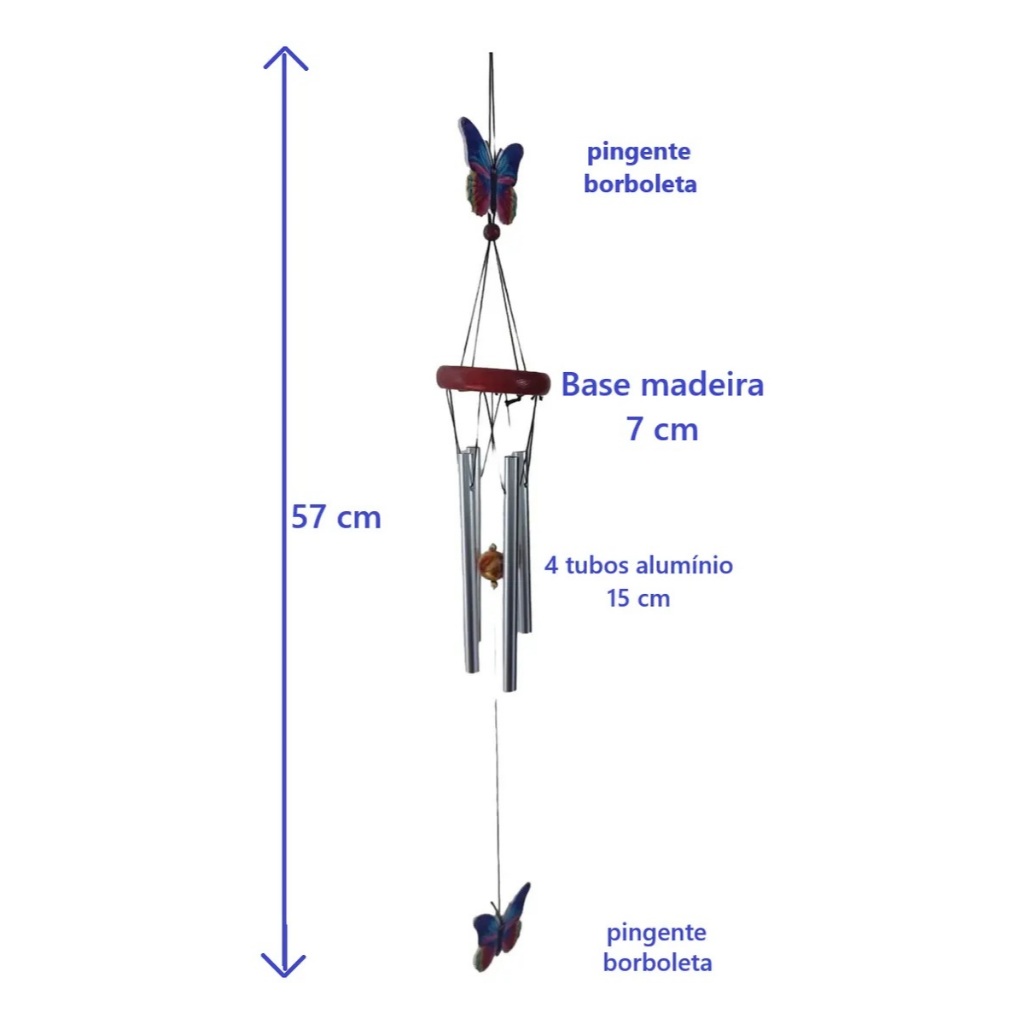 Mensageiro Sino dos Ventos Borboleta Pássaro Azul Fen Shui Som relaxante Enfeite Porta