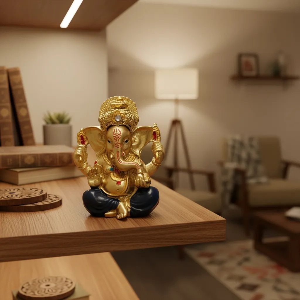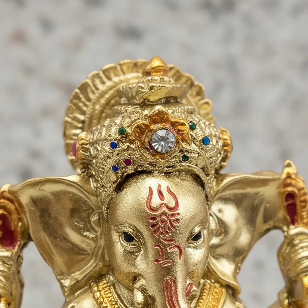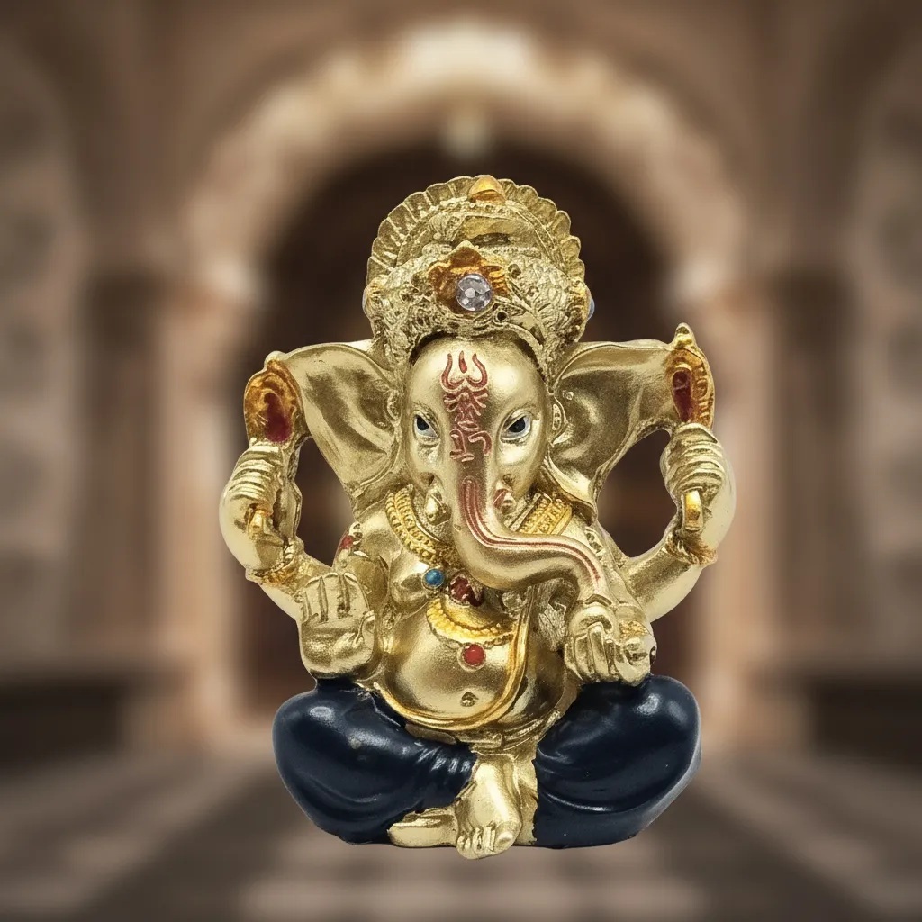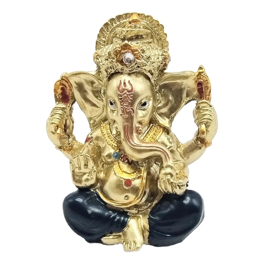 Estátua Ganesha Dourado Pequeno – Enfeite Decorativo em Resina