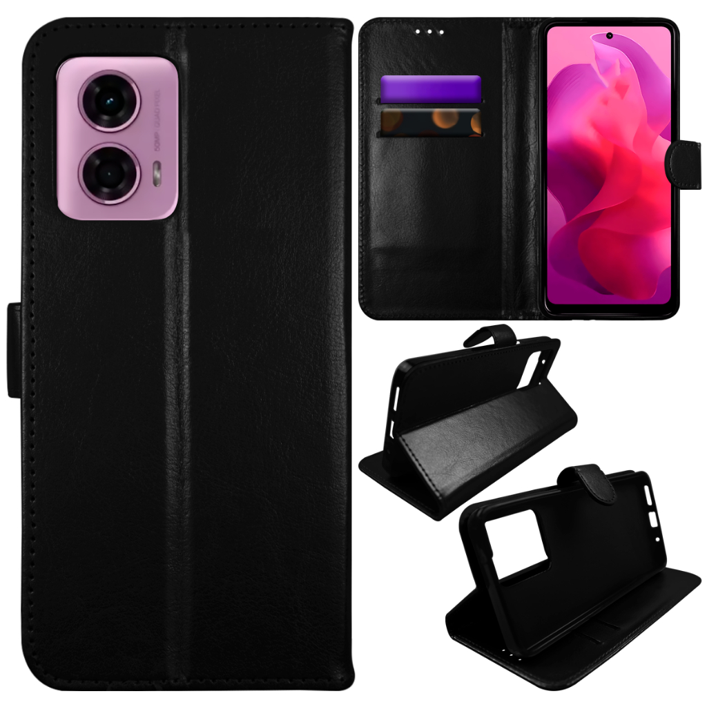 Capa Case Capinha Carteira Flip Cover Couro Sintético PRETA Para Motorola Moto G24 Xt2423 tela 6.6 Cell in Power25